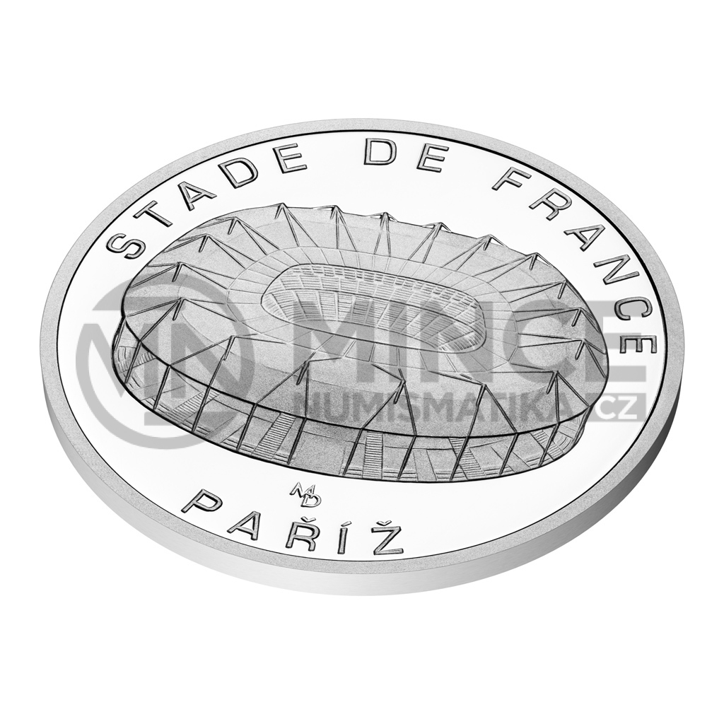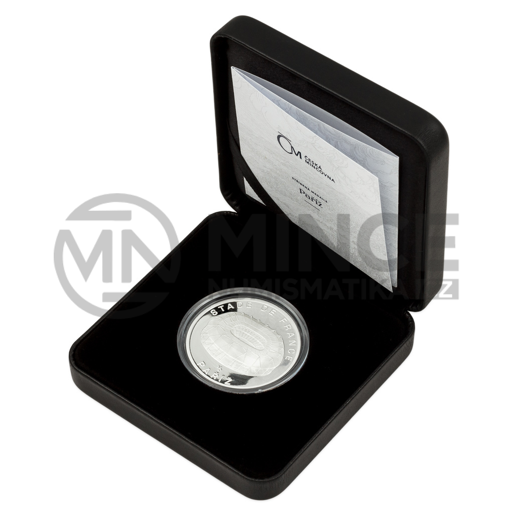 Na averzní straně stříbrné ražby, která je dílem medailéra MgA. Martina Daška, najdete vyobrazení francouzského národního stadionu Stade de France, který se nachází v pařížské aglomeraci ve městě Saint-Denis. Reverzní strana je pak věnována ikonické Eiffelově věži, české vlajce a českému lvu.