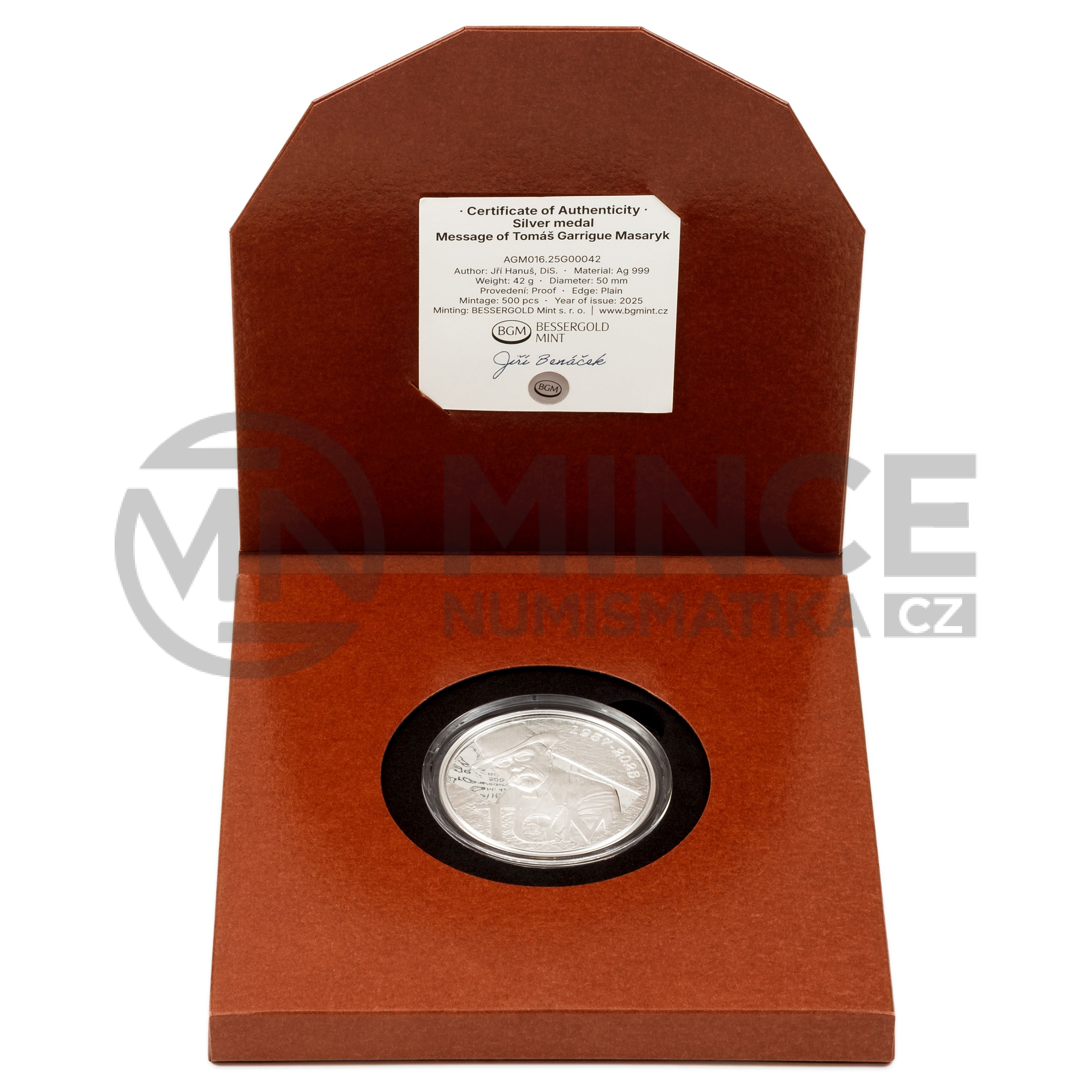 Stříbrná medaile s názvem Poselství T. G. M. odkazuje ke sdělení, které nám zanechal první Československý prezident Tomáš Garrigue Masaryk (1850 - 1937), jehož znění se již zanedlouho dozvíme.