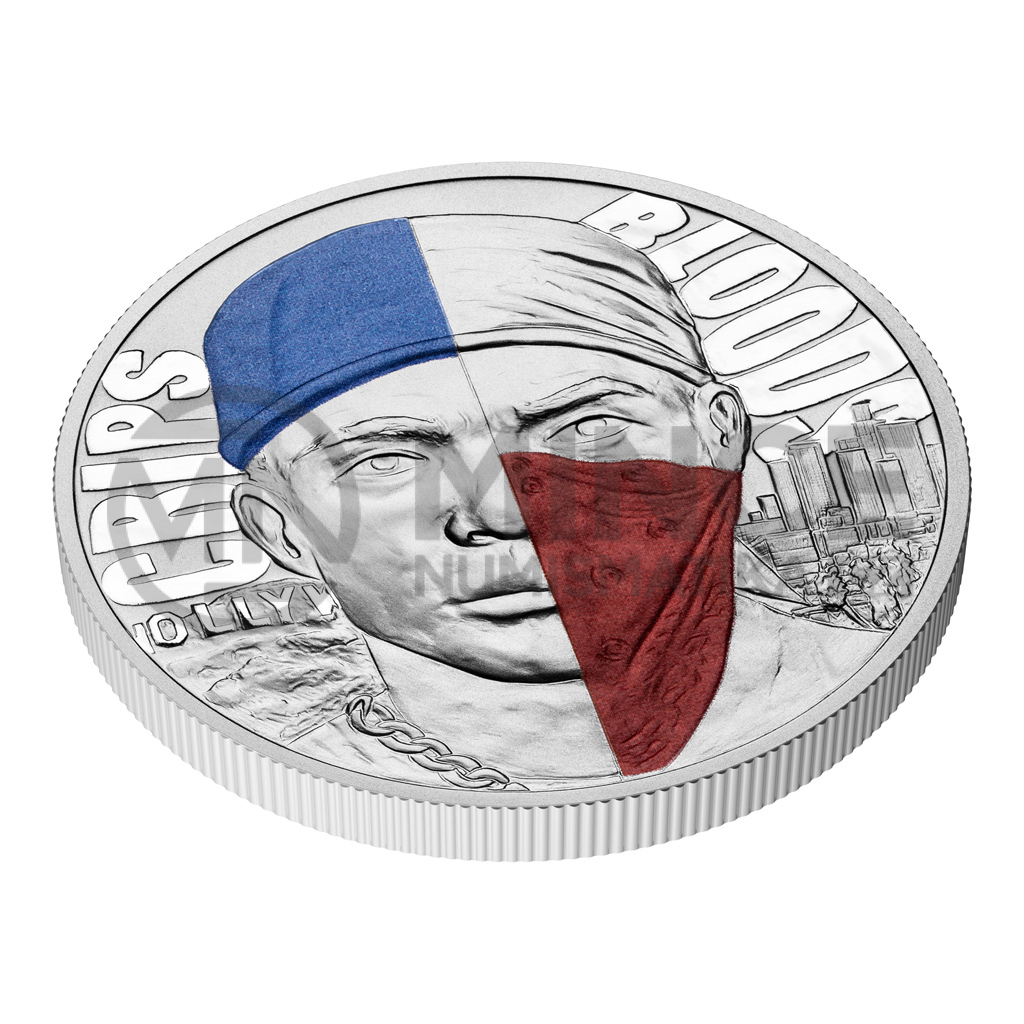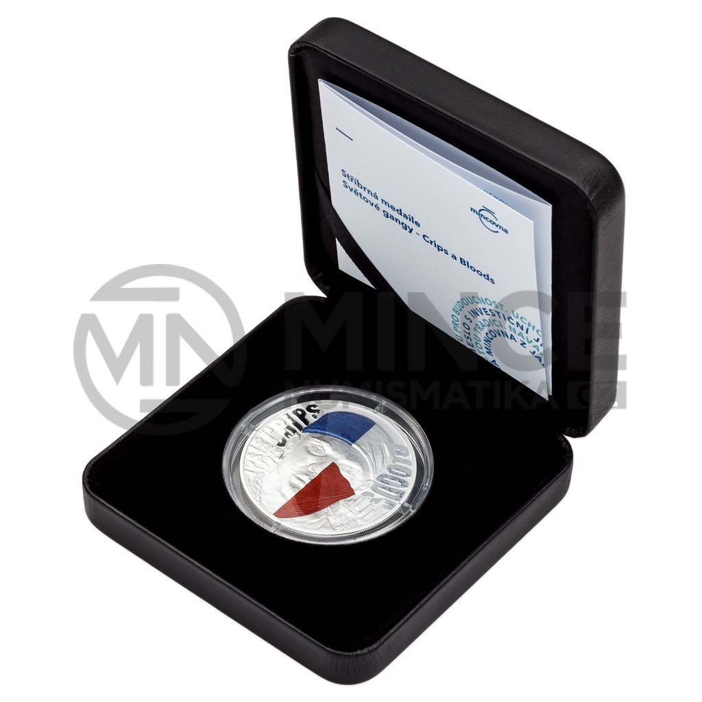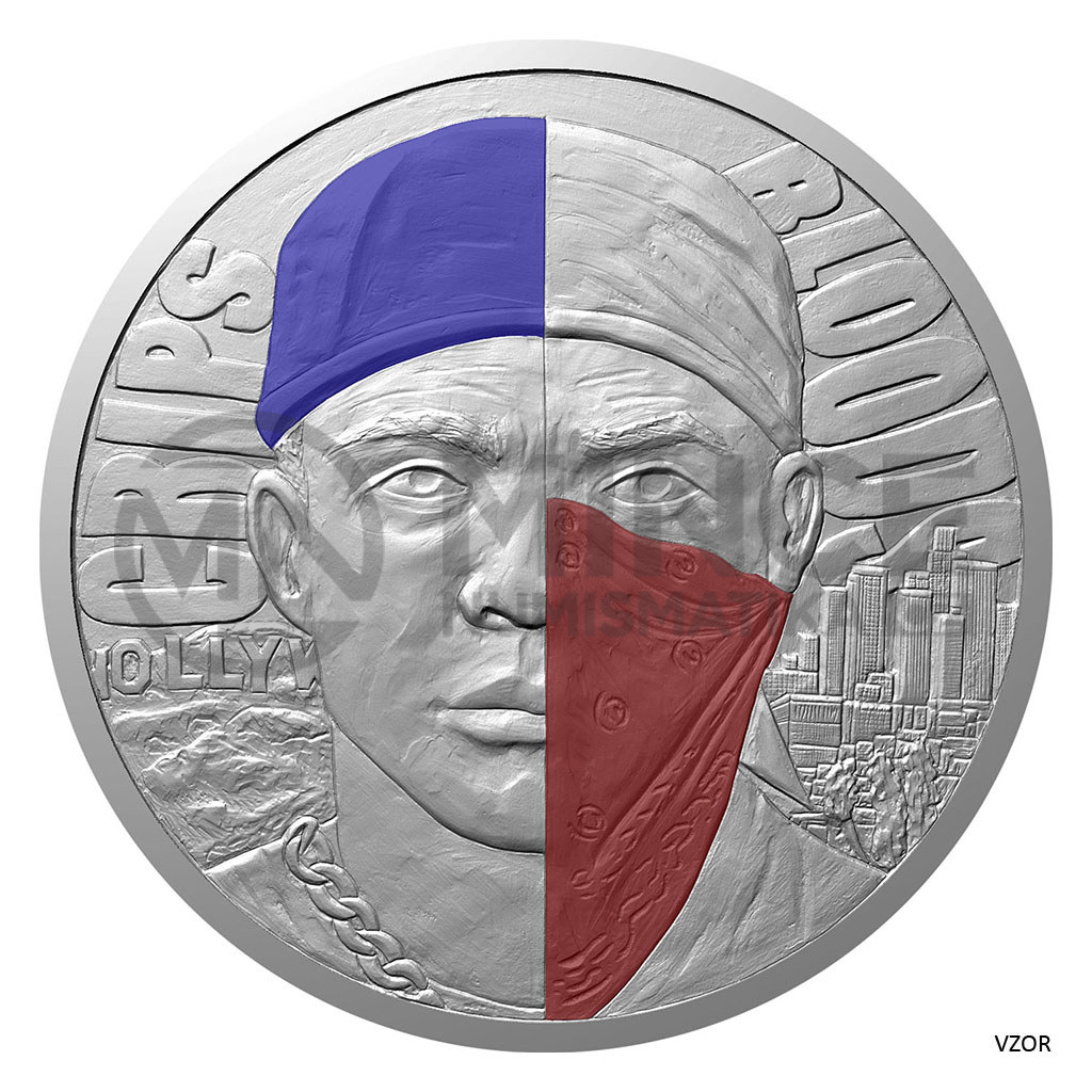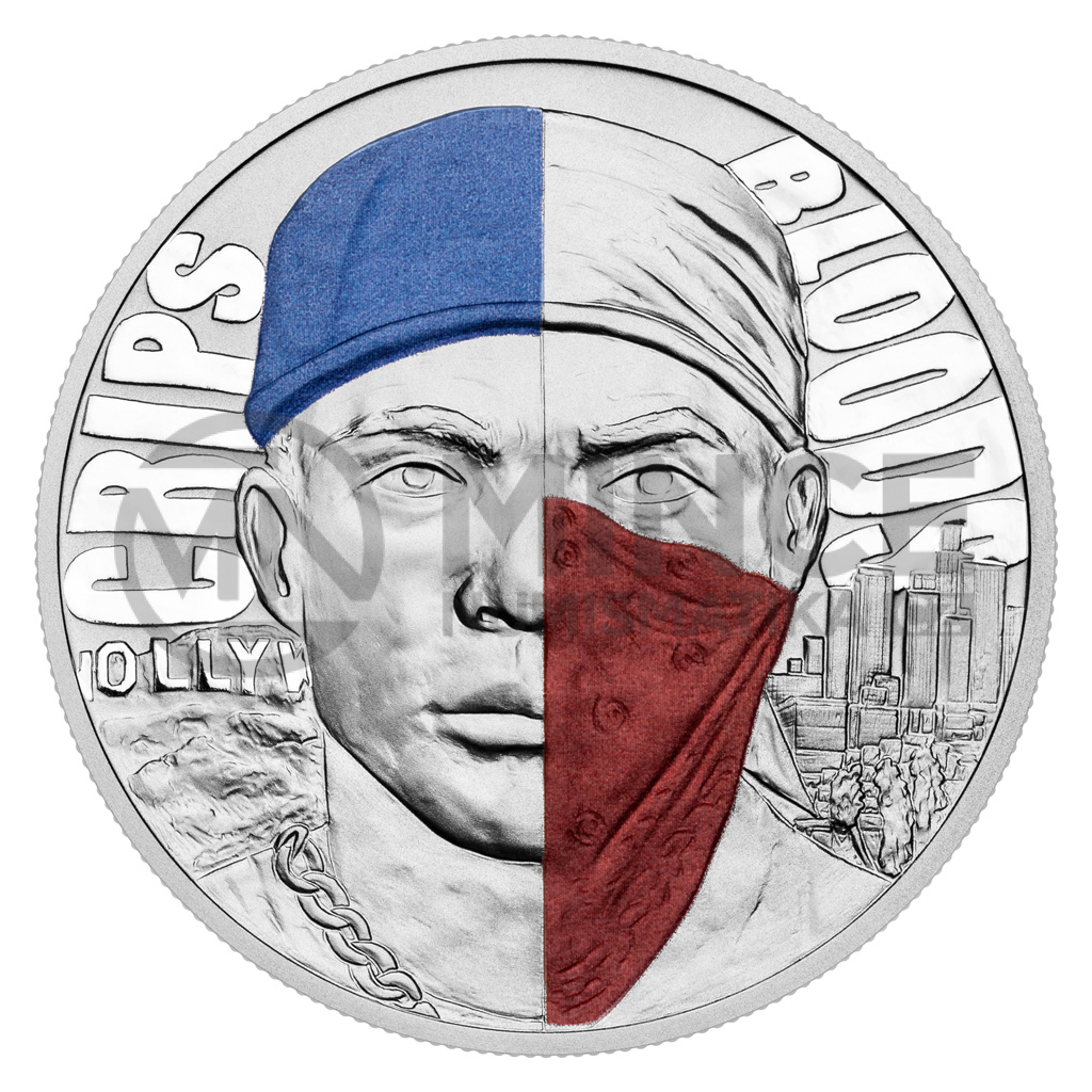 Cyklus České mincovny s názvem Světové gangy je temnou kronikou organizovaného zločinu. Třetí stříbrná medaile představuje americké gangy Crips a Bloods.