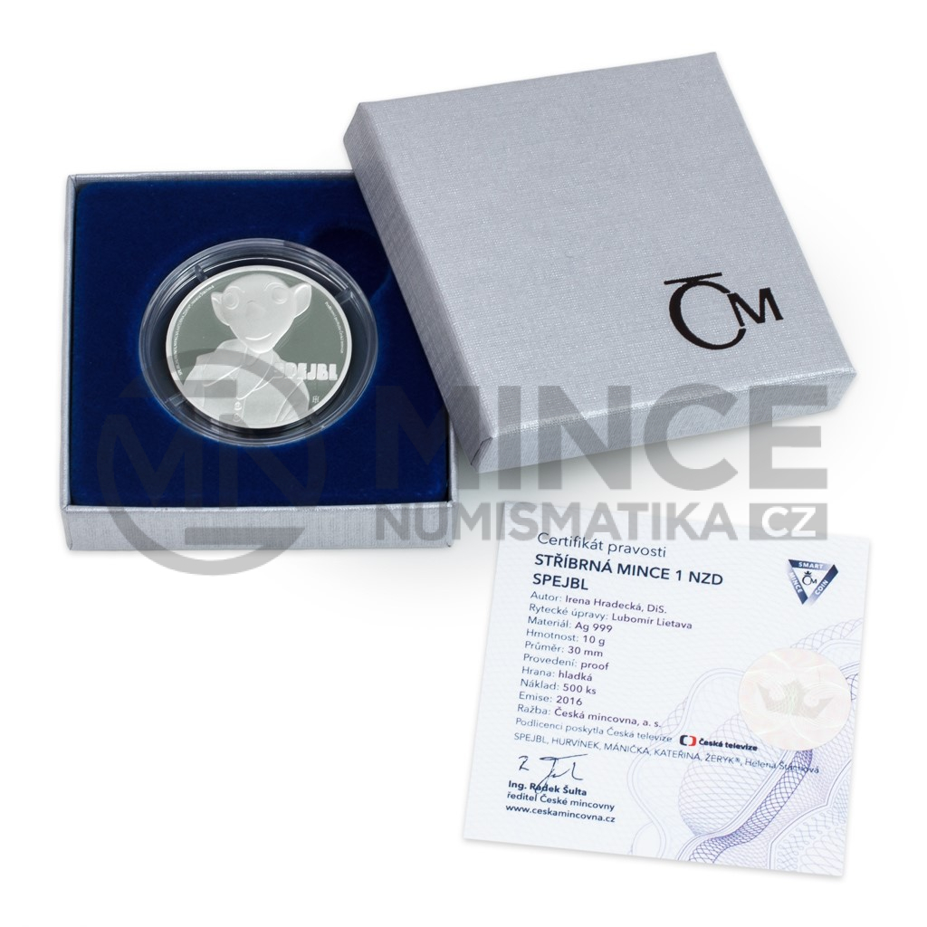 Autorkou výtvarného návrhu stříbrné mince je talentovaná jablonecká medailérka Irena Hradecká, DiS., která má za sebou celou řadu pohádkových realizací – vedle Hurvínka vyšli z její dílny například Křemílek s Vochomůrkou nebo víla Amálka. Reverz mince je věnován jménu a bustě pana Spejbla s typickým komicky omylným výrazem. Smart mince vycházejí pod licencí tichomořského ostrova NIUE ISLAND, a averzní strana tak patří následujícím atributům emitenta: jménu a portrétu královny Alžběty II., nominální hodnotě 1 DOLLAR (NZD) a roku vydání 2016.
