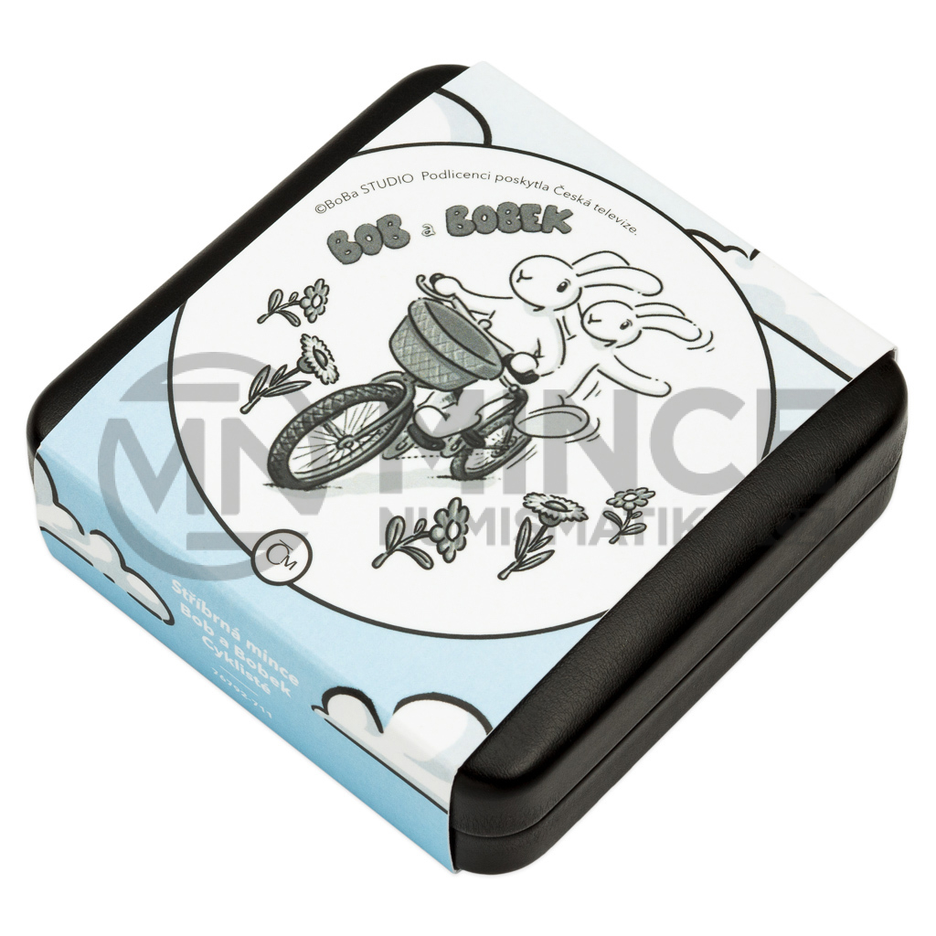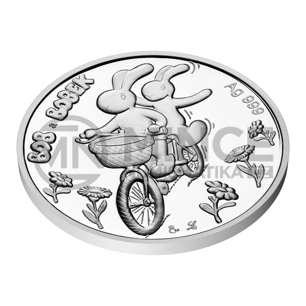 Třetí stříbrná mince ze sběratelské minisérie České mincovny věnované Bobovi a Bobkovi představuje oba králíky v úloze vášnivých cyklistů.