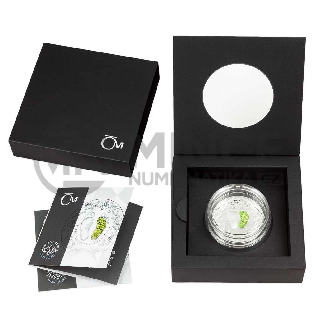 Unikátní dárková řada „Crystal Coin“ je výsledkem spojení tradičních jabloneckých řemesel – mincovnictví České mincovny a sklářství společnosti Preciosa. K nejoblíbenějším motivům, které se objevují na stříbrných mincích s českým křišťálem, patří narození dítěte. Originální dárek do kolébky vychází i v roce 2025.