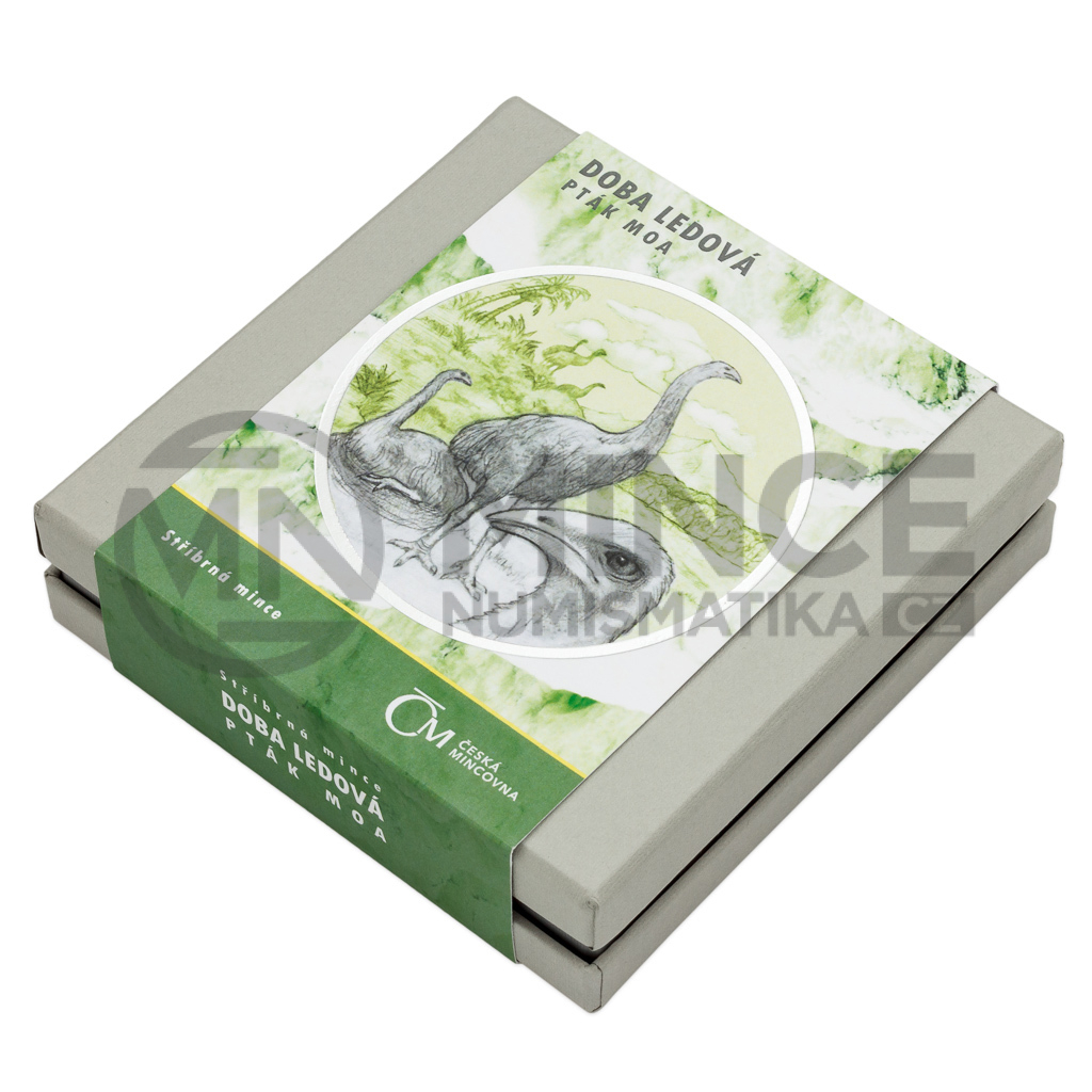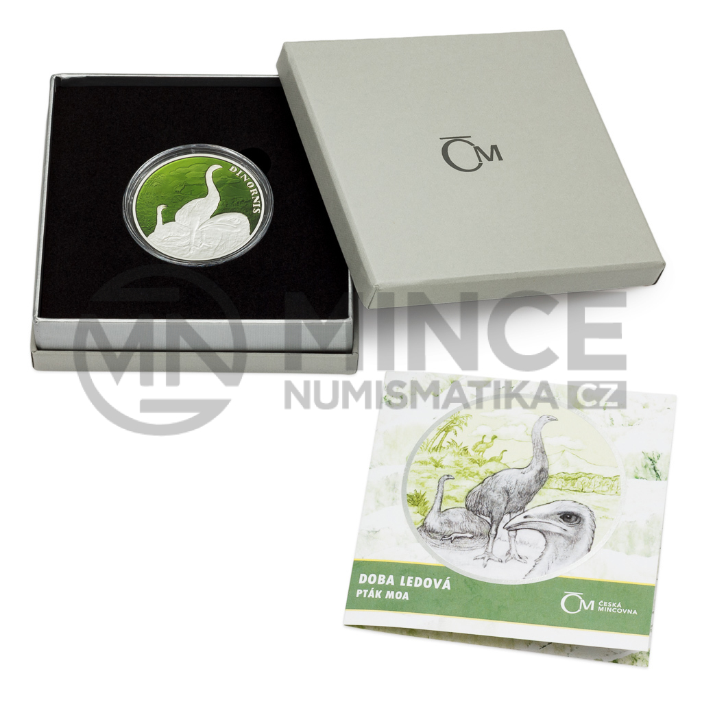 Druhá stříbrná mince z cyklu České mincovny s názvem Doba ledová představuje kolosálního ptáka moa.