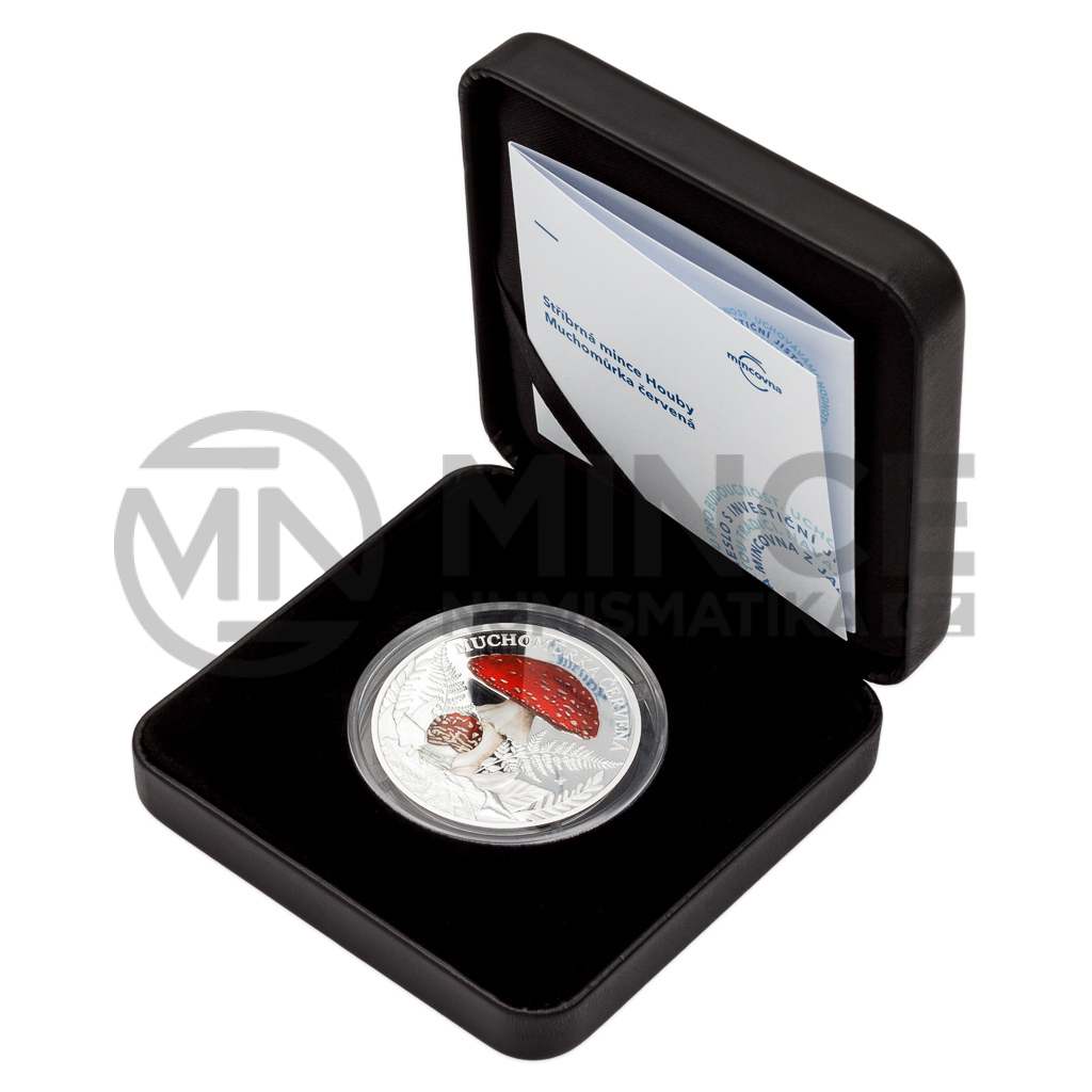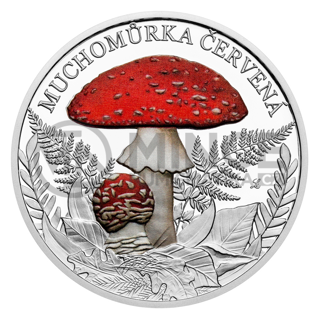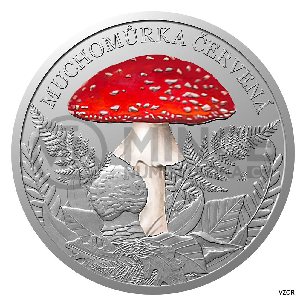 První houbou, která se objevuje na stříbrné minci České mincovny z dvanáctidílného houbařského cyklu, je muchomůrka červená.