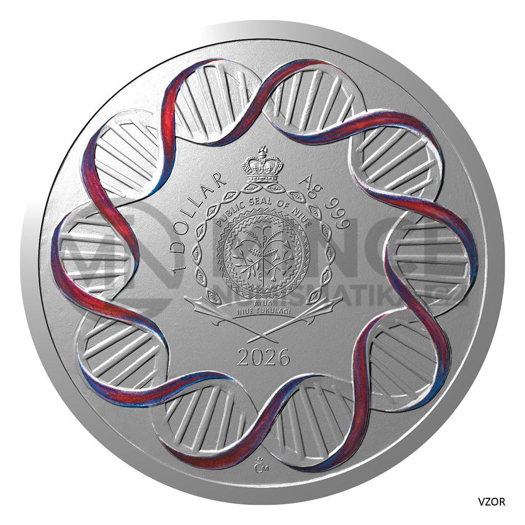 Reverzní strana mince, která je dílem medailéra Jana Štekla, DiS., nese kolorovaný řez lidskou hlavou se zvýrazněnými krčními mandlemi. Kompozici dotváří latinský opis TONSILLAE PALATINAE (krční mandle). Na averzní straně, která je společná celému cyklu, pak najdete kolorovanou dvoušroubovici DNA. Protože mince České mincovny vycházejí v zahraniční licenci ostrova Niue, nesou na averzu ještě jeho státní znak, nominální hodnotu 1 DOLLAR (NZD) a rok emise 2026.