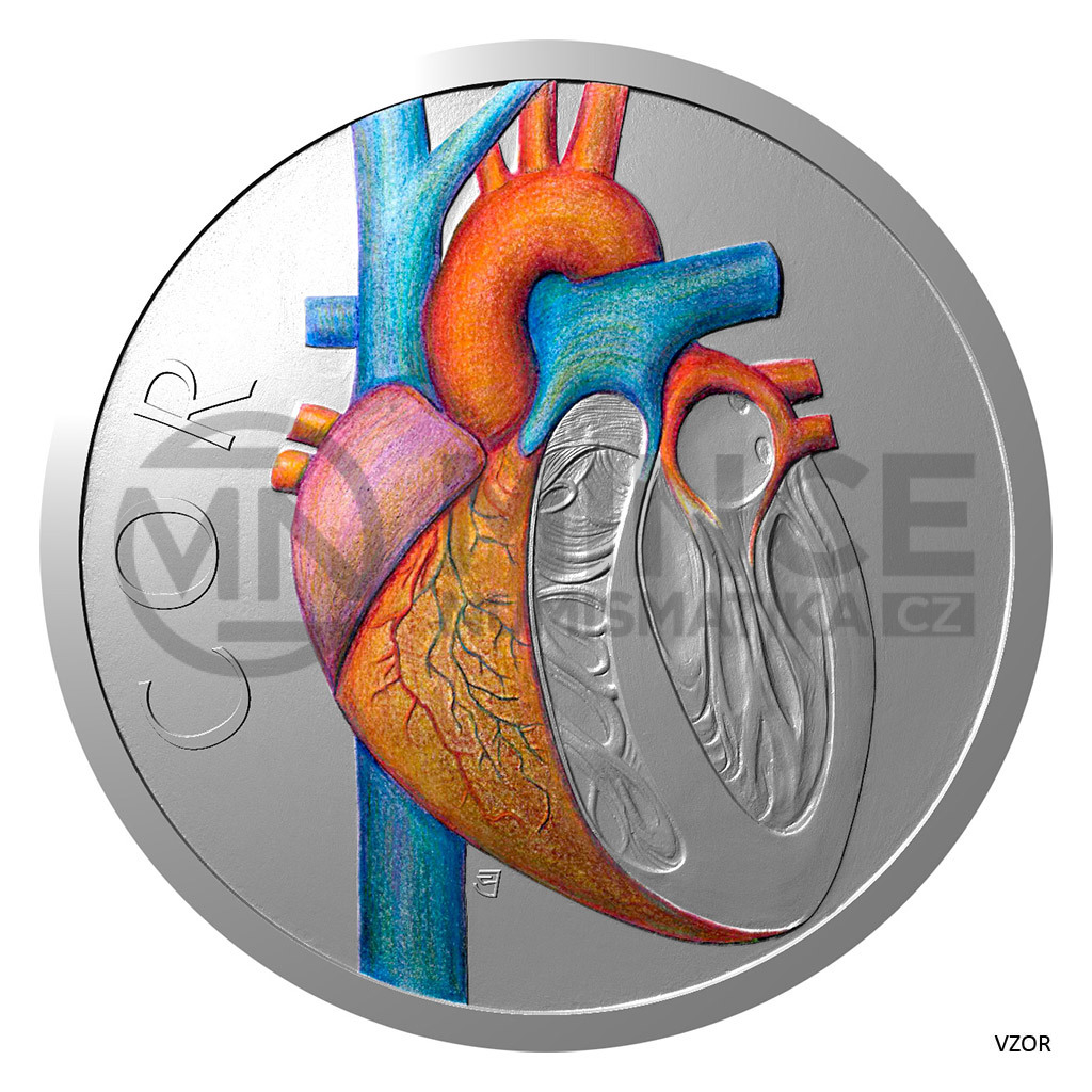 Šestá stříbrná mince České mincovny z cyklu s názvem Lidské tělo je věnována oběhové soustavě – konkrétně srdci.