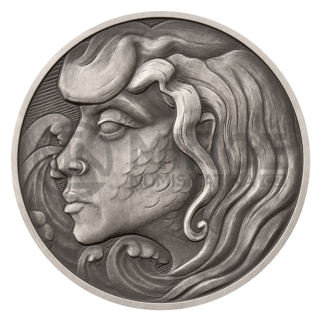 Čtvrtá stříbrná mince České mincovny z cyklu s názvem Mytologické postavy představuje půvabnou mořskou pannu.