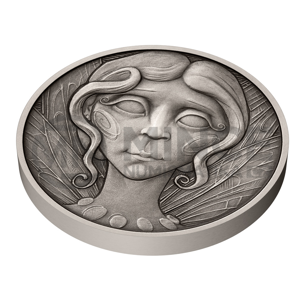 Šestá stříbrná mince České mincovny z cyklu s názvem Mytologické postavy představuje rozvernou vílu.