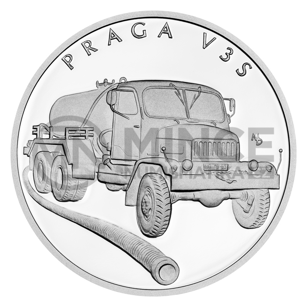 Univerzální nákladní automobil Praga V3S, jehož nejvýznamnějším rysem byla bezkonkurenční průchodnost terénem, sice vznikl pro potřeby československé armády, ale zazářily také jeho civilní varianty. Hold mu vzdává dvaadvacátá stříbrná mince České mincovny z cyklu Na kolech.