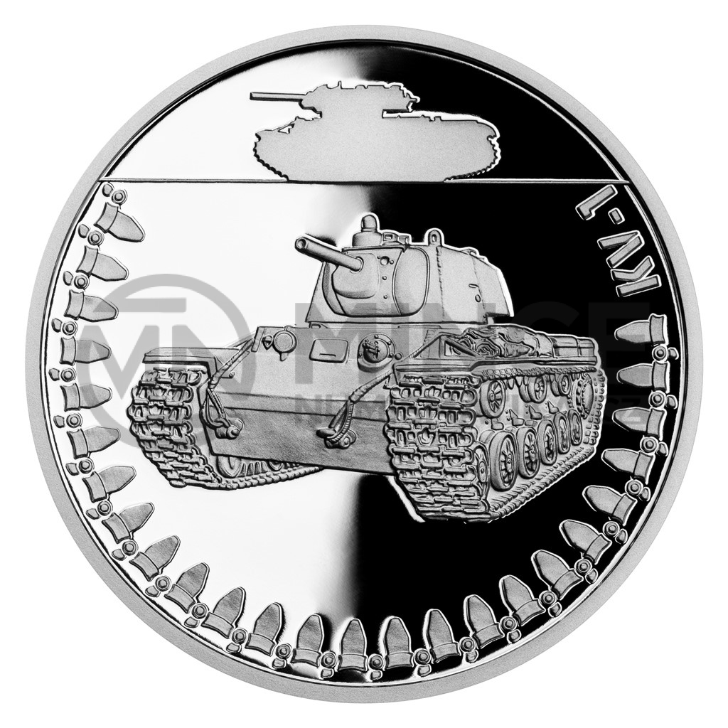 Šestá stříbrná mince České mincovny z cyklu Obrněná technika připomíná sovětský tank KV-1, který sloužil za druhé světové války.