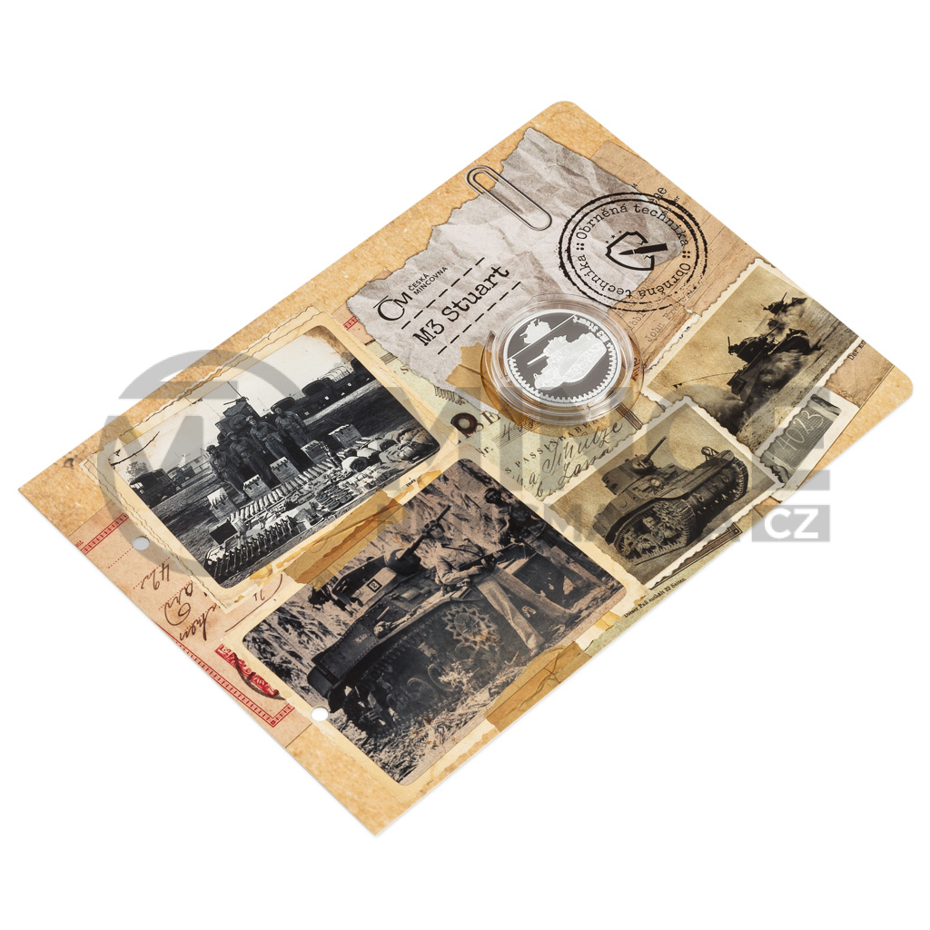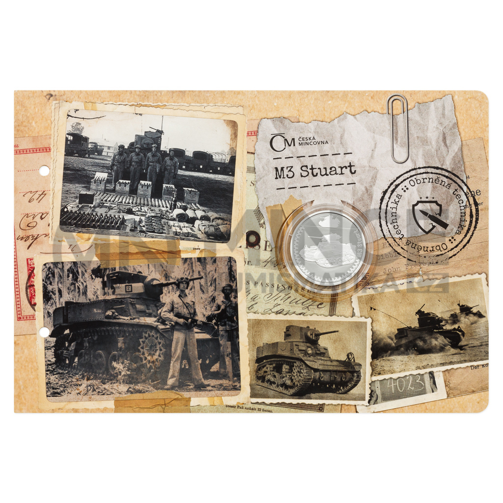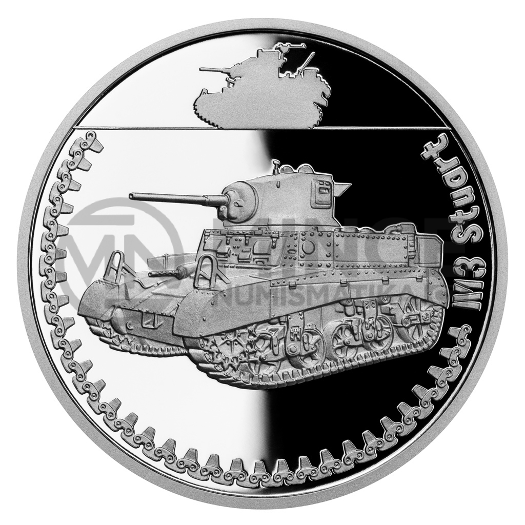 Na sedmé stříbrné minci České mincovny z cyklu Obrněná technika se objevuje americký tank M3 Stuart, který sloužil za druhé světové války.