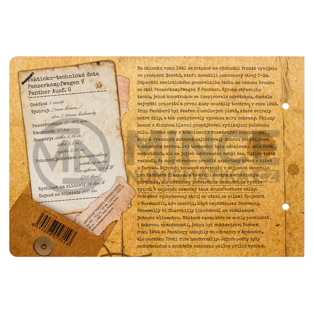Tanky T-34, se kterými se němečtí vojáci střetli po napadení Sovětského svazu v roce 1941, představovaly pro útočníky vážnou hrozbu. Přímou odpovědí nacistického generálního štábu na pokrokový nepřátelský stroj se stal střední tank Panzerkampfwagen V Panther, jehož konstrukce se viditelně inspirovala sovětskou. Trup Pantherů, které opustily továrnu v roce 1943, byl svařen z ocelových plátů, jež svíraly ostré úhly, a tak poskytovaly vysokou míru ochrany. Účinný kanon s dlouhou hlavní propůjčoval vynikající palebnou sílu. Široké pásy v kombinaci s rozměrnými pojezdovými koly a výkonným motorem zajišťovaly dobrou pohyblivost v náročném terénu. Při testování byla odhalena i celá řada nedostatků, ale na jejich odstranění nebyl čas – Adolf Hitler totiž rozhodl, že nový obrněnec prodělá křest v bitvě u Kurska. Uspěchané nasazení v největším tankovém střetnutí všech dob skončilo fiaskem, a to kvůli častým mechanickým poruchám. Panther však navzdory počátečním neúspěchům rychle vyzrál v nejlepší německý tank druhé světové války. Průběžně vylepšovaný stroj se utkal se silami Spojenců v Normandii, kde zazářil, když nepřátelské Shermany, Cromwelly či Churchilly likvidoval na vzdálenost jednoho kilometru. Některé exempláře se mohly pochlubit i takovou vymožeností, jakou byl noktovizor. Koncem roku 1944 se Panthery zapojily do ofenzivy v Ardenách, ale porážku Třetí říše neodvrátily. Jejich počty byly nedostatečné a spotřeba vzácného paliva příliš vysoká…