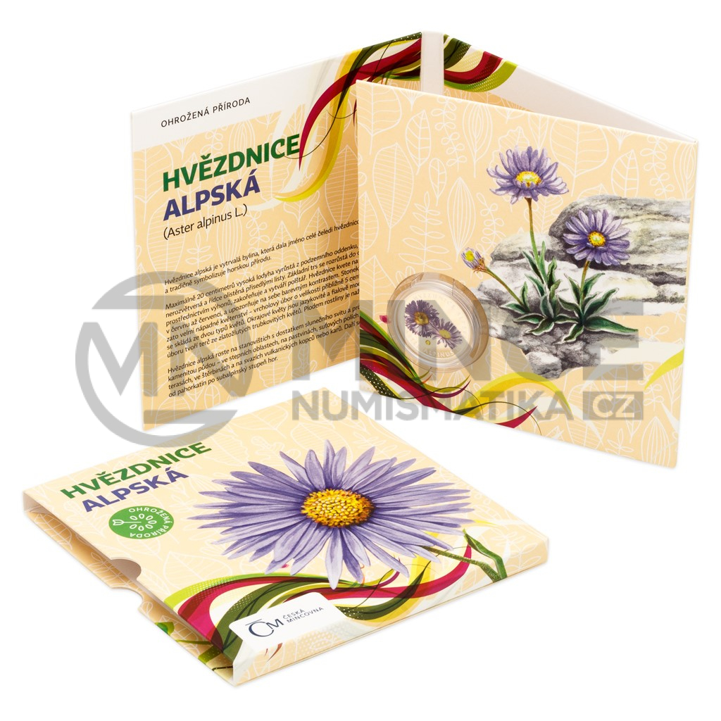 Cyklus České mincovny Ohrožená příroda se chýlí ke konci a představuje svou předposlední rostlinu zapsanou na seznamu mizejících druhů. Kolorovaná stříbrná mince je věnována hvězdnici alpské.