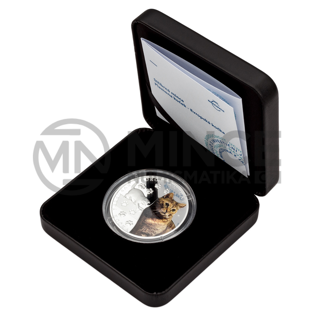 Na desáté stříbrné minci České mincovny z cyklu Plemena koček se objevuje evropská krátkosrstá kočka.