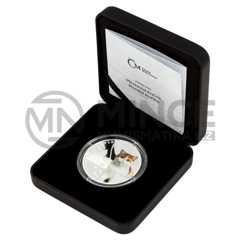 Čtvrtá stříbrná mince České mincovny z cyklu Plemena koček je věnována perské kočce.