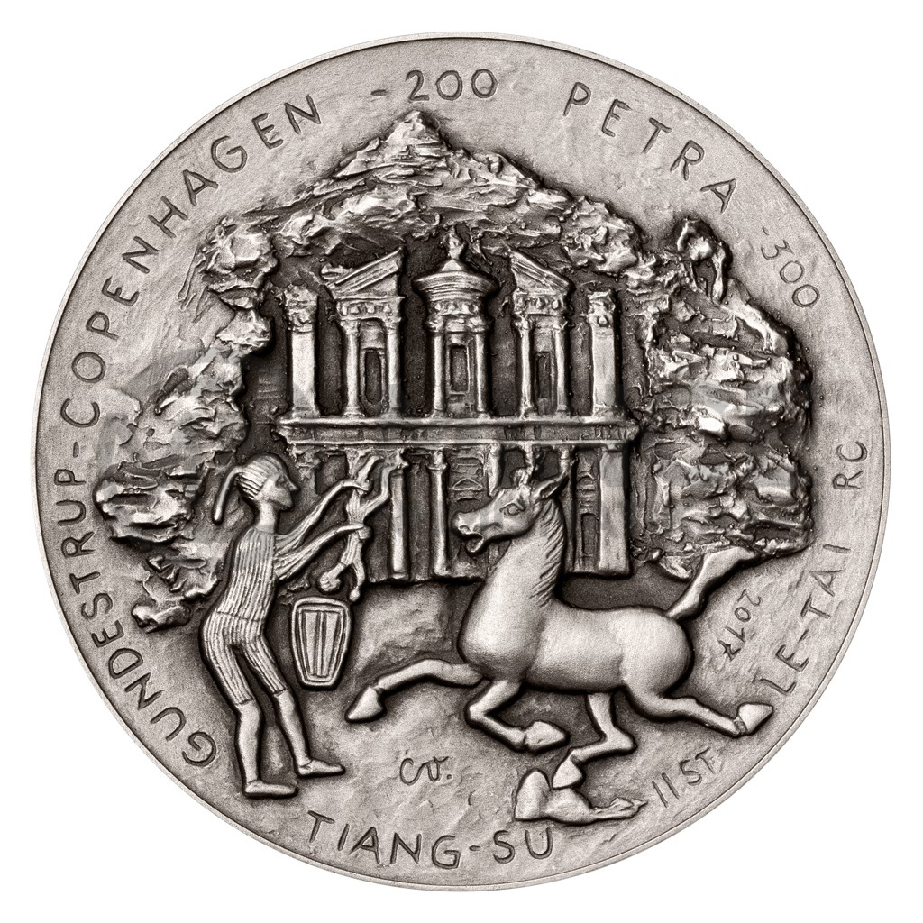 Ľudmila Cvengrošová je přední slovenskou sochařkou, ale také vášnivou cestovatelkou, která navštívila památná místa po celém světě. Svou lásku k umění, cestování a všem lidským kulturám zhmotnila do podoby pamětních mincí České mincovny. V reliéfu první stříbrné mince z cyklu, který představuje poklady starých civilizací, se objevují skalní město Petra, kotlík z Gundestrupu a letící kůň z Kan-su.