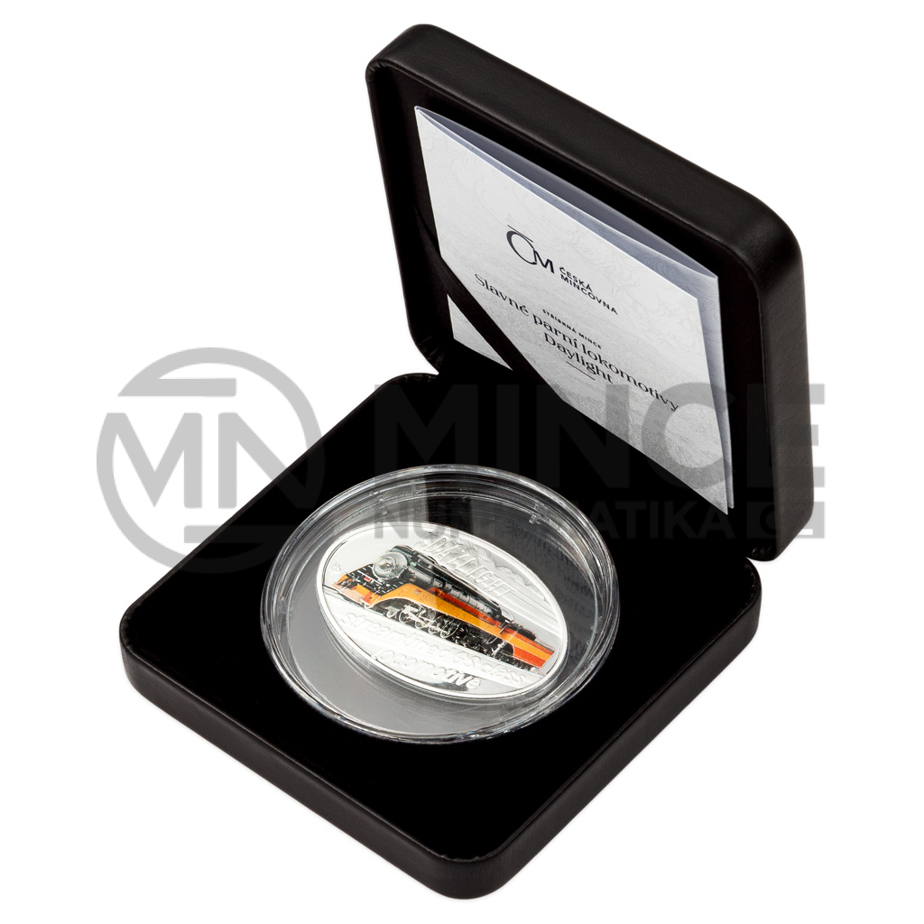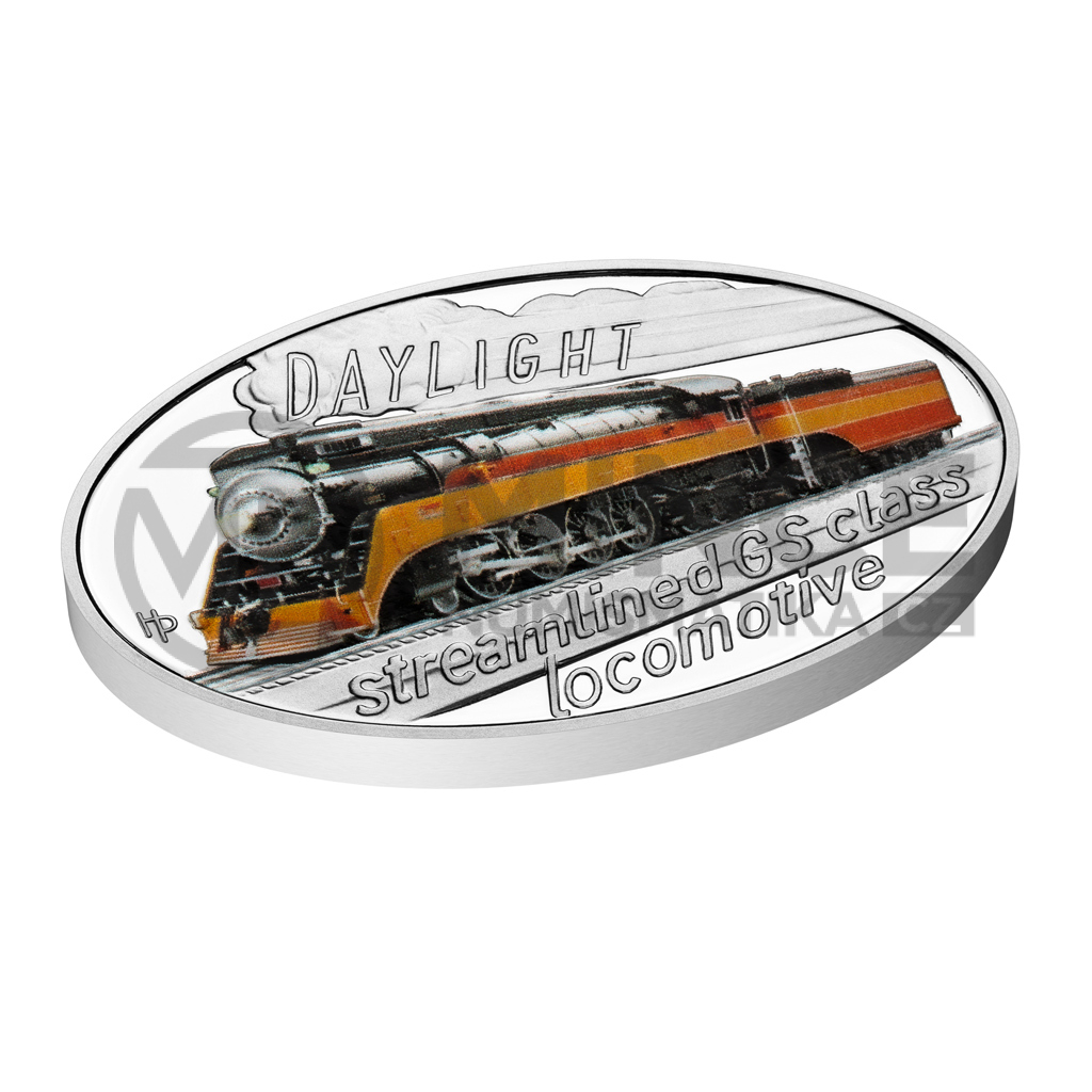 Na čtvrté kolorované stříbrné minci České mincovny z cyklu s názvem Slavné lokomotivy se objevuje Daylight, který je synonymem amerického cestování.