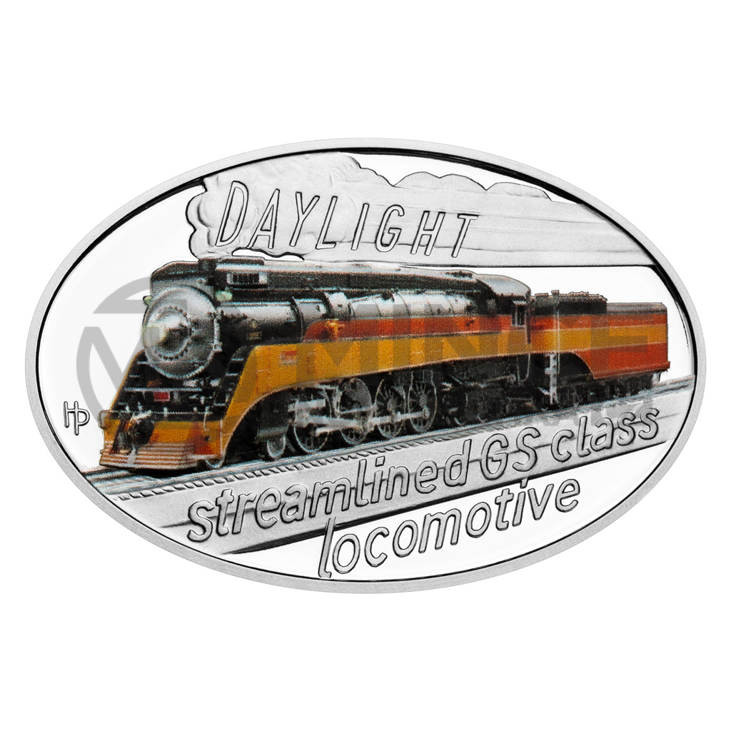 Reverzní strana mince, která je dílem medailéra Mgr. Petra Horáka, předkládá lokomotivu, jejíž realistický vzhled s charakteristickými barvami byl vytvořen s pomocí technologie kolorování. Do kouře, který se line z komína, je zakomponován název DAYLIGHT. Anglický text STREAMLINED GS CLASS LOCOMOTIVE pak připomíná, že šlo o proudnicovou lokomotivu řady GS. Na averzní straně mince, která je společná celému cyklu, najdete železniční koleje a tunel. Protože mince České mincovny vycházejí v zahraniční licenci ostrova Niue, nesou na averzu ještě jeho státní znak, nominální hodnotu 1 DOLLAR (NZD) a rok emise 2025.