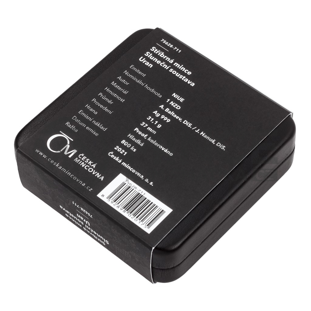 Reverzní stranu mince věnovali medailéři Asamat Baltaev, DiS., a Jiří Hanuš, DiS., vyobrazení Uranu v živých barvách, kterých bylo dosaženo pomocí technologie tamponového tisku. V raženém reliéfu je pak patrné Slunce obklopené oběžnými dráhami dalších planet sluneční soustavy. Kompozici uzavírá nápis URAN. Jako předloha pro kolorování nebyly použity fotografie nebo počítačová grafika – autoři mincí vytvořili originální akvarelové malby. Mincovní plocha ražeb se vyznačuje speciální úpravou – kombinací proofování, pískování a lejzrování razidel bylo docíleno nového efektu, který jsme nazvali „měsíční prach“. Averzní strana mince je věnována vyobrazení celé sluneční soustavy a předkládá astronomické symboly jednotlivých planet. Ve středu soustavy najdete portrét Alžběty II., který je spolu se jménem královny, letopočtem emise 2021 a nominální hodnotou 1 DOLLAR (NZD) nezbytným atributem emitenta mince. Tím je tichomořský ostrov Niue, který České mincovně poskytuje zahraniční licenci k ražbě vlastních pamětních mincí.