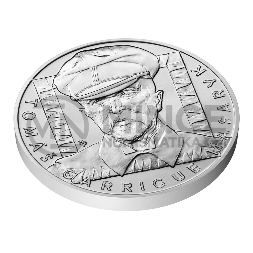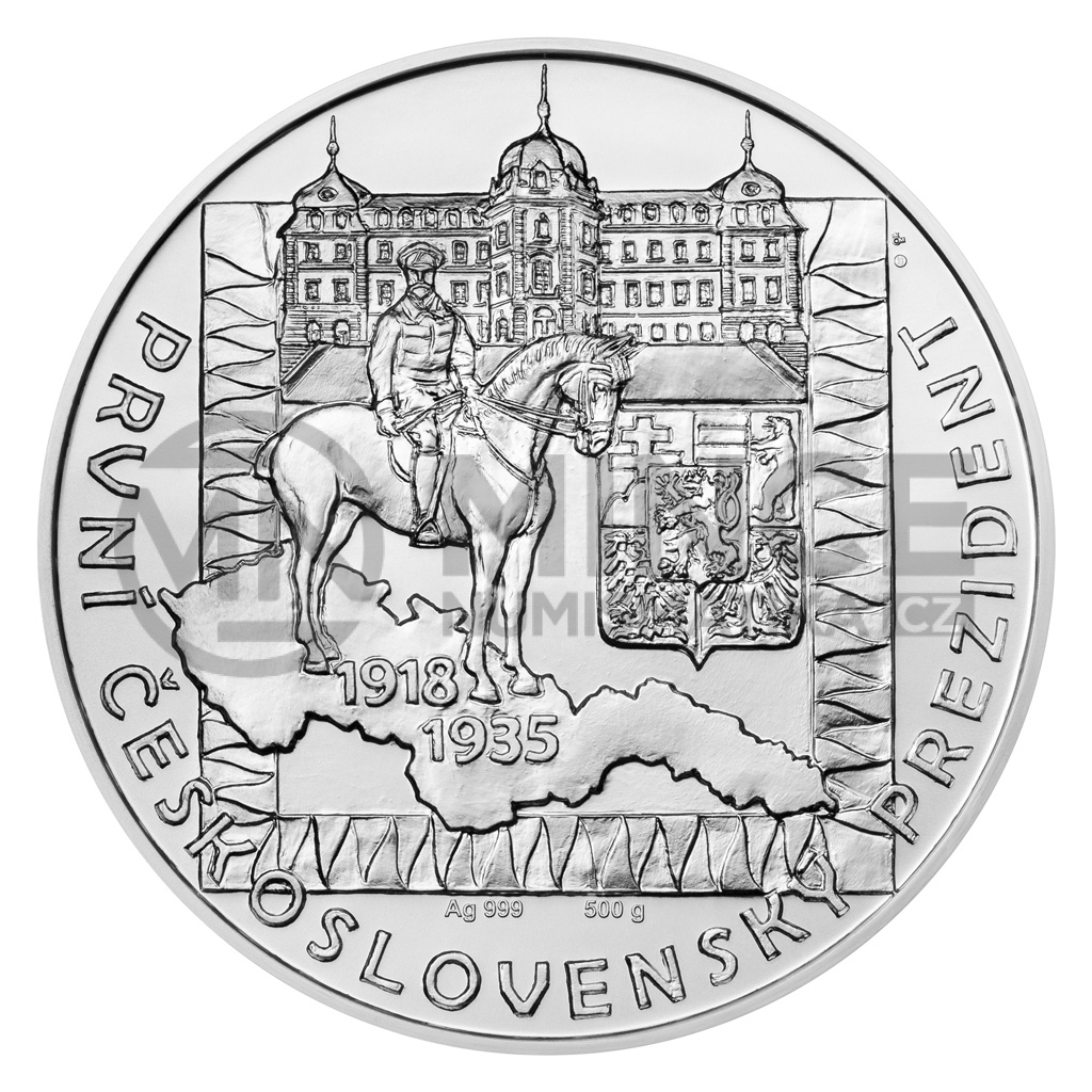 Autorem majestátní ražby se stal medailér Mgr. Petr Horák. Averzní stranu věnoval portrétu prezidenta v typické čepici „masaryčce“, který je orámován trikolórou prezidentské standarty a opisem TOMÁŠ GARRIGUE MASARYK. Tatíčka Masaryka najdete i na reverzní straně medaile, kde sedí na svém oblíbeném koni Hektorovi před zámkem Lány. Bohatou kompozici dotváří ještě velký státní znak a silueta Československa s prezidentskými letopočty 1918–1935. Rámeček opět vychází z prezidentské standarty a opis uvádí PRVNÍ ČESKOSLOVENSKÝ PREZIDENT.