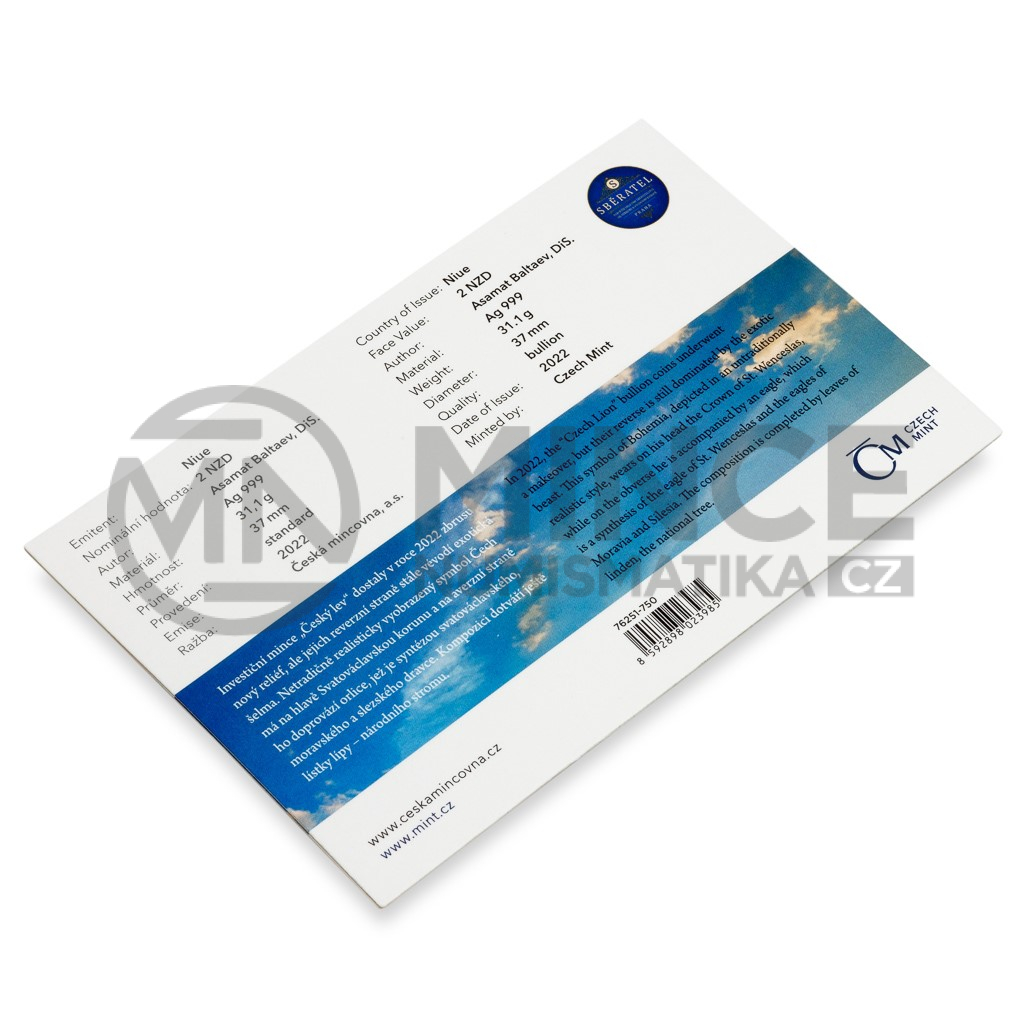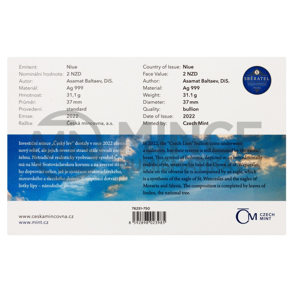 Světové investiční mince bývají věnovány silným národním symbolům a ani „Český lev“, který je první ražbou svého druhu určenou pro český trh, není výjimkou. Hmotnost stříbrné mince České mincovny s ročníkem 2022 činí jednu trojskou unci.