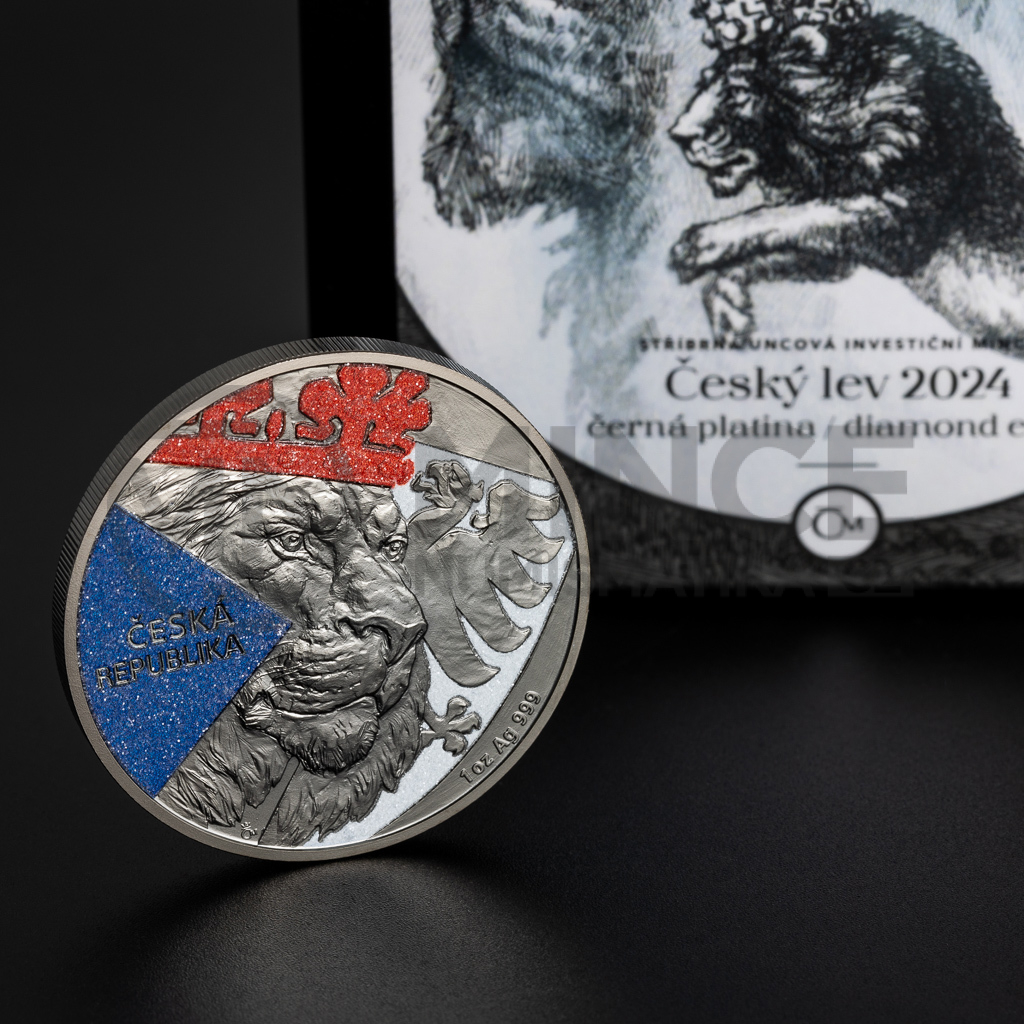 „Čeští lvi“ – investiční mince České mincovny – sice slouží k uložení peněžních prostředků do drahých kovů, ale jejich propracovaný reliéf láká také každého, kdo chce rozšířit svou numismatickou sbírku nebo věnovat výjimečný dárek. Krásu stříbrné mince s ročníkem 2024 podtrhuje hned dvojí povrchová úprava. Pokovení nevšední černou platinou doprovází třpytivý diamantový efekt.