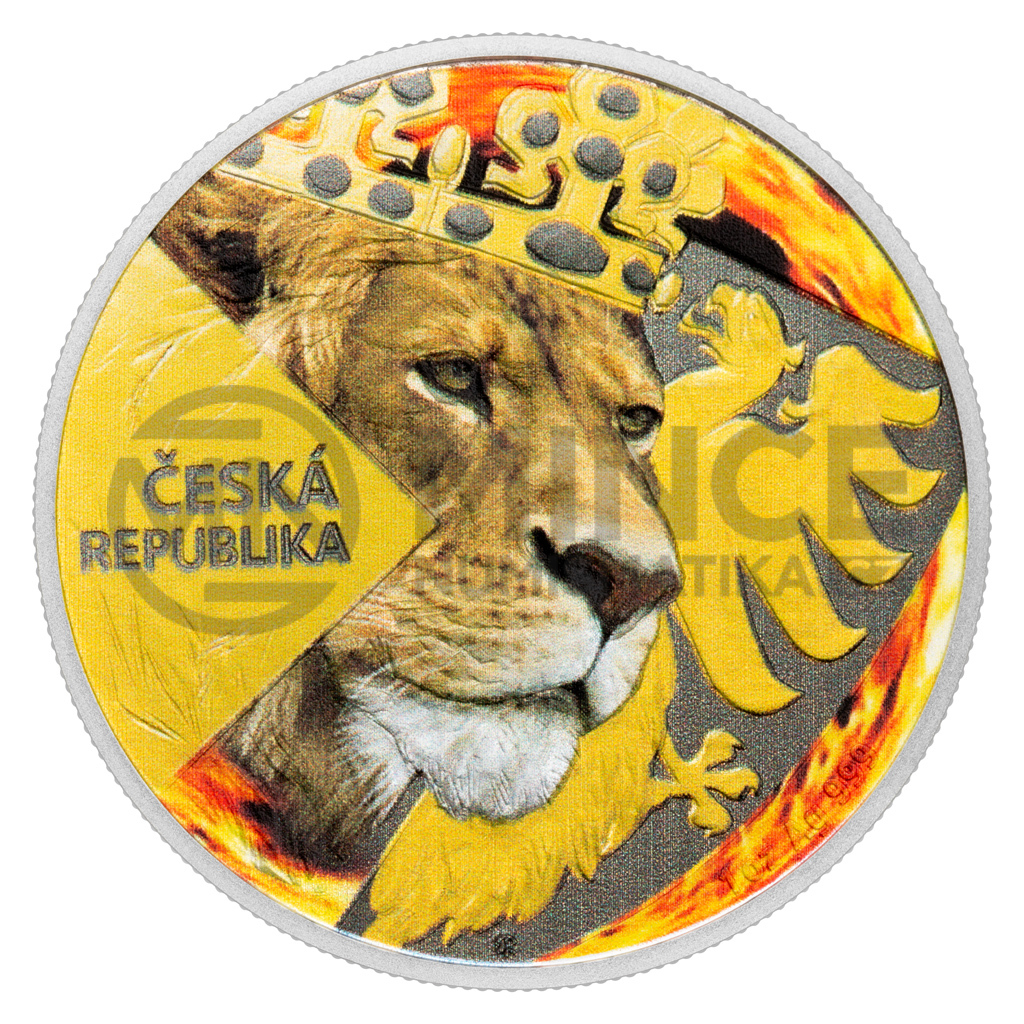 Českým heraldickým zvířetem je odpradávna lev. Tato majestátní šelma byla symbolem síly a odvahy, ale také divokosti a zápalu, které Čechové prokazovali na středověkých bojištích. Díky investičním mincím se lev stal také světoznámým nositelem bohatství a prosperity. Investiční mince Český lev vycházejí v řadě variant, ale tato uncová stříbrná ražba je výjimečná. První společná licencovaná emise, která se pyšní provedením proof a kolorováním v živlu ohně, je plodem dlouhodobého partnerství mezi Českou mincovnou a italskou společností Power Coin.