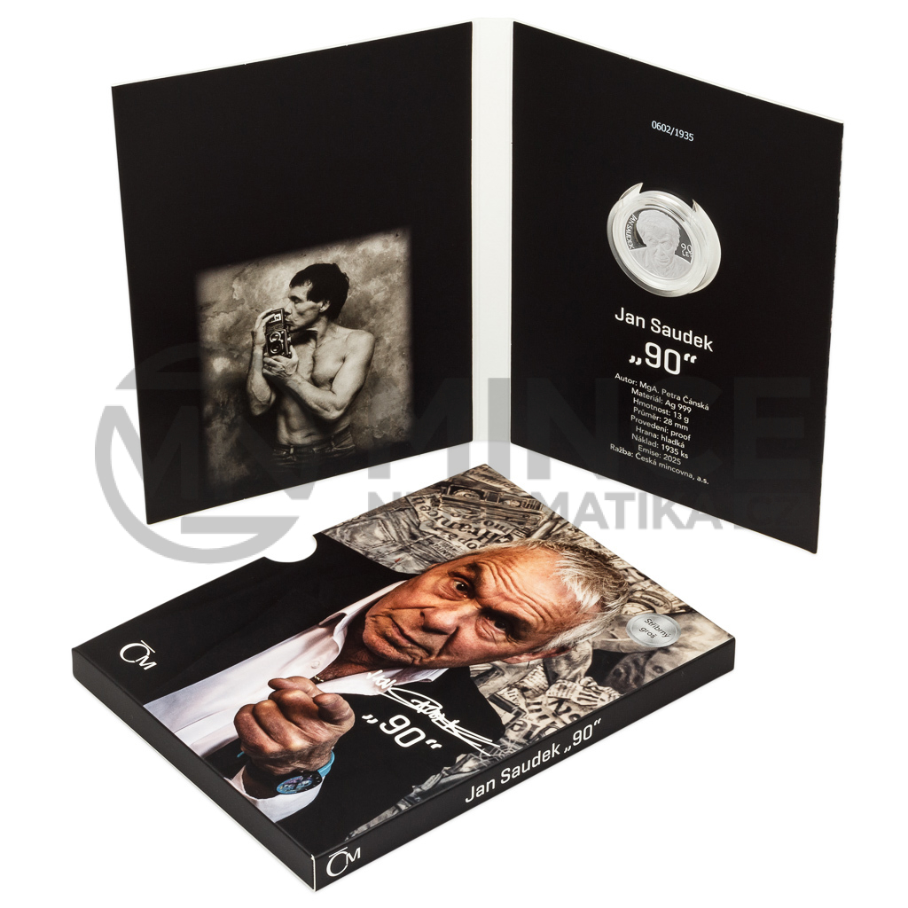 Stříbrná ražba zasazená do speciálního číslovaného balení vychází v nákladu, který čítá 1935 kusů, a tak odkazuje na letopočet narození Jana Saudka.