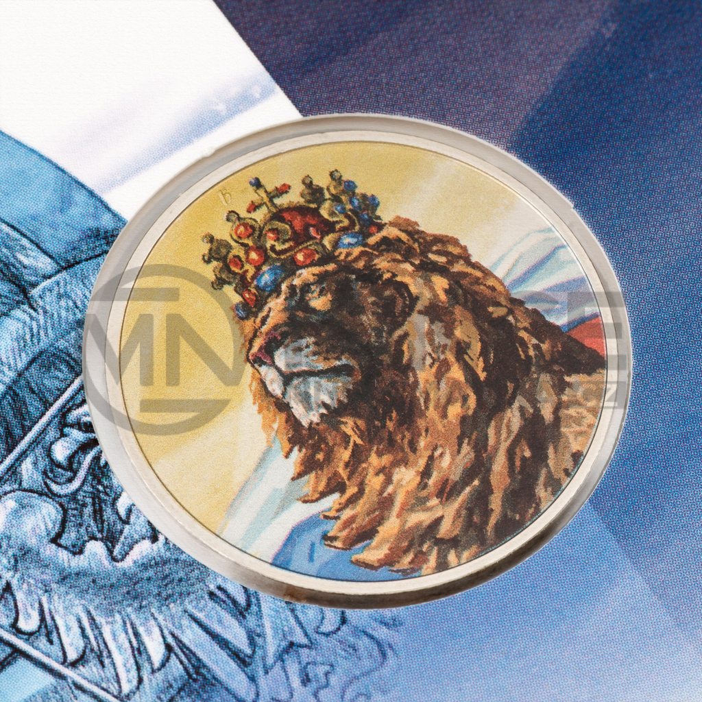 Averzní straně medaile vévodí korunovaná hlava majestátního českého lva. Vlastenecký motiv z ateliéru Asamata Baltaeva, DiS., je zpracován v živých barvách, kterých bylo dosaženo s pomocí technologie kolorování. Na reverzní straně pak najdete českou vlajku a QR kód, který směřuje na web České mincovny.