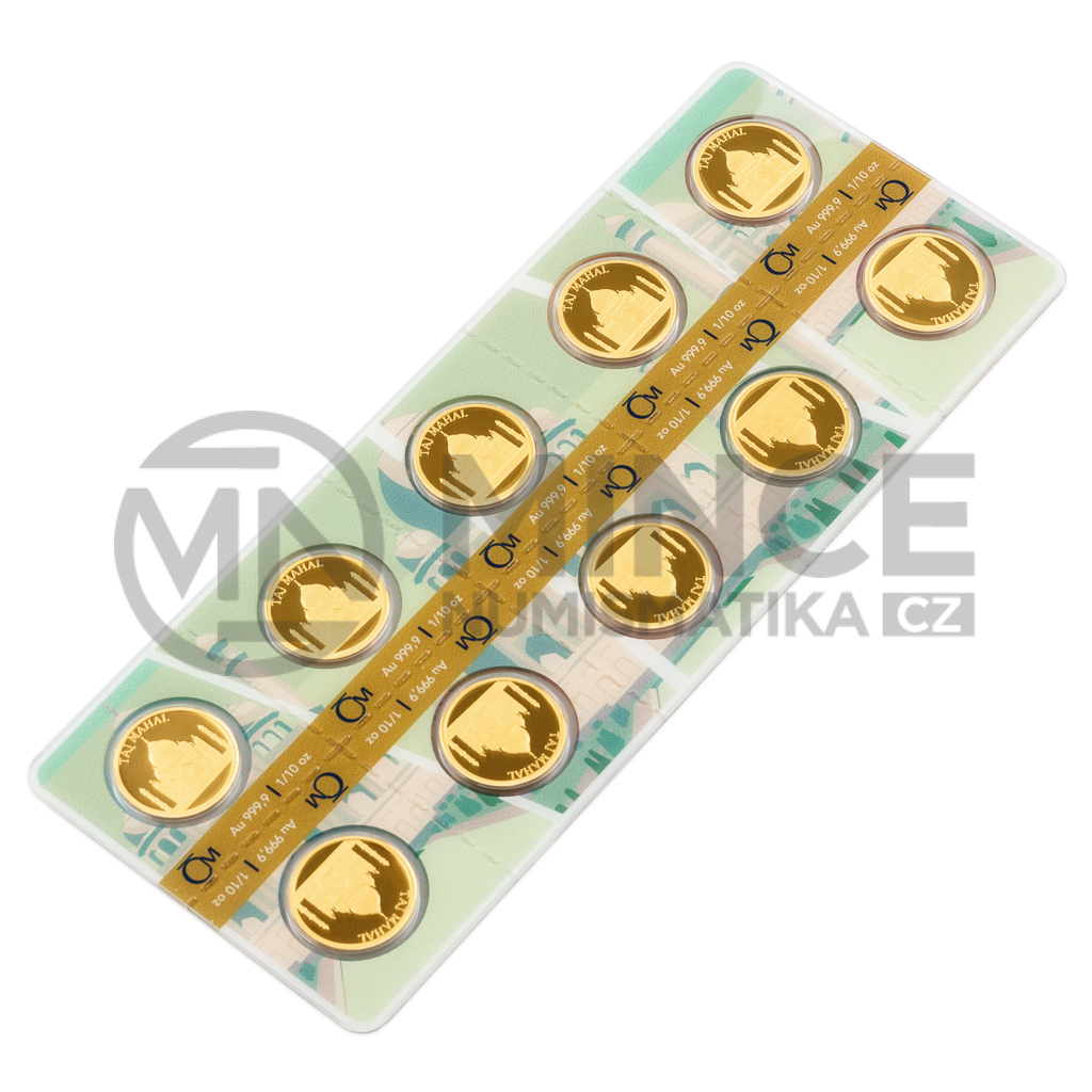 Šestá emise z cyklu České mincovny, který je věnovaný novým sedmi divům světa, připomíná indický pomník Tádž Mahal. Tento speciální produkt ocení především investoři. Celé balení obsahuje jednu trojskou unci zlata, ovšem rozdělenou do podoby deseti identických mincí. V momentě, kdy chcete zpeněžit jenom část své investice, můžete balení rozlámat a prodat po kouscích…