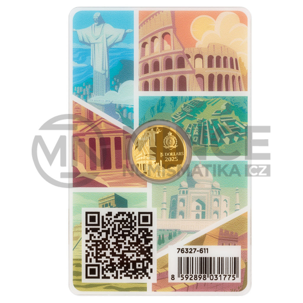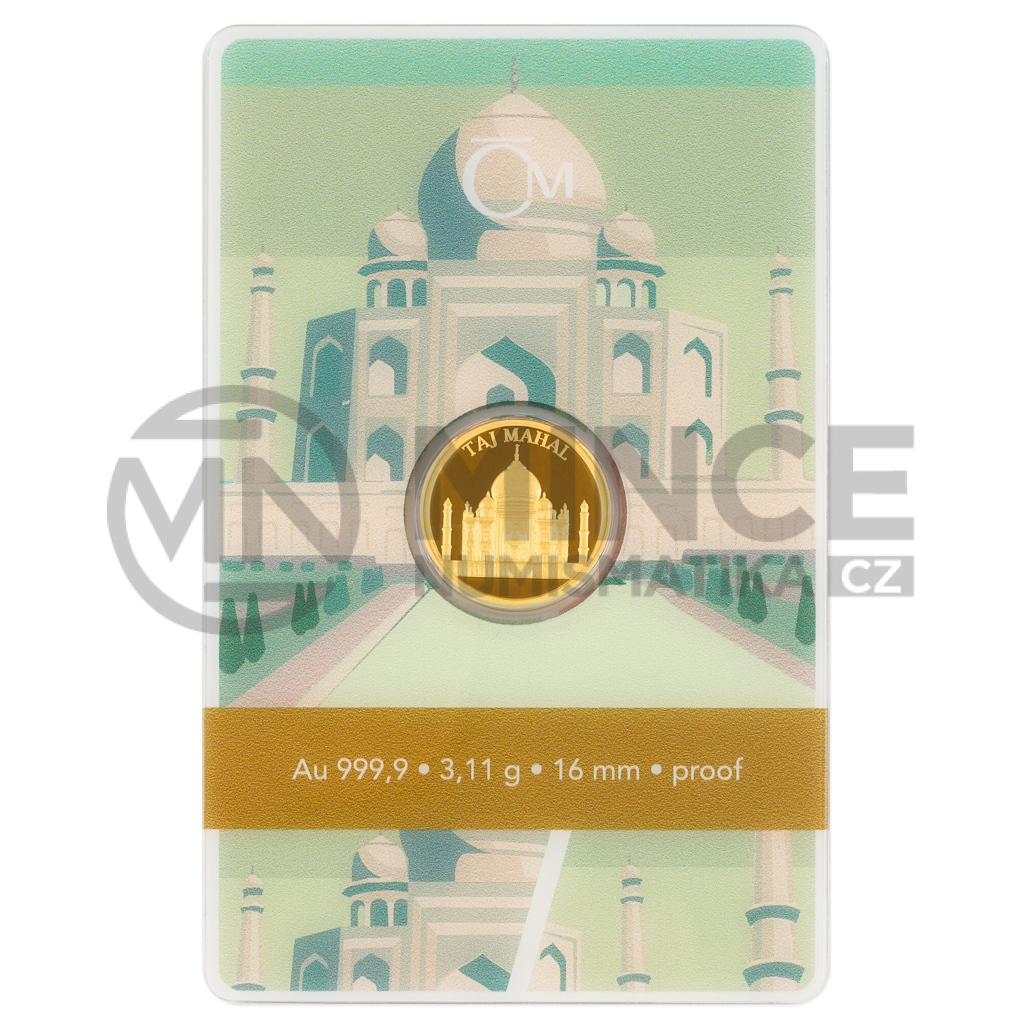 Šestým z nových sedmi divů světa je indický pomník Tádž Mahal. Legendární památku připomíná zlatá mince České mincovny o hmotnosti jedné desetiny trojské unce.