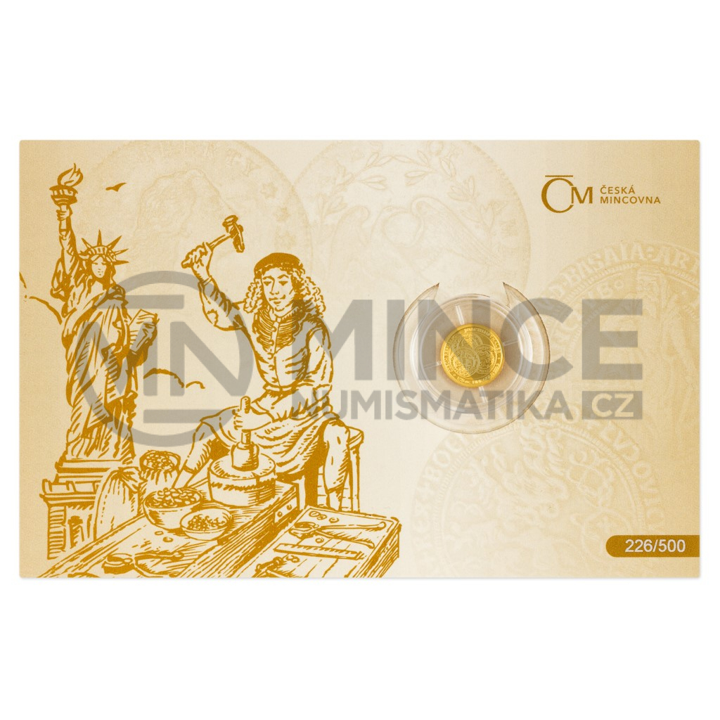 Jak se z jáchymovských tolarů staly americké dolary? Tento neuvěřitelný příběh vám připomene investiční mince České mincovny vyražená z jedné pětadvacetiny trojské unce ryzího zlata.