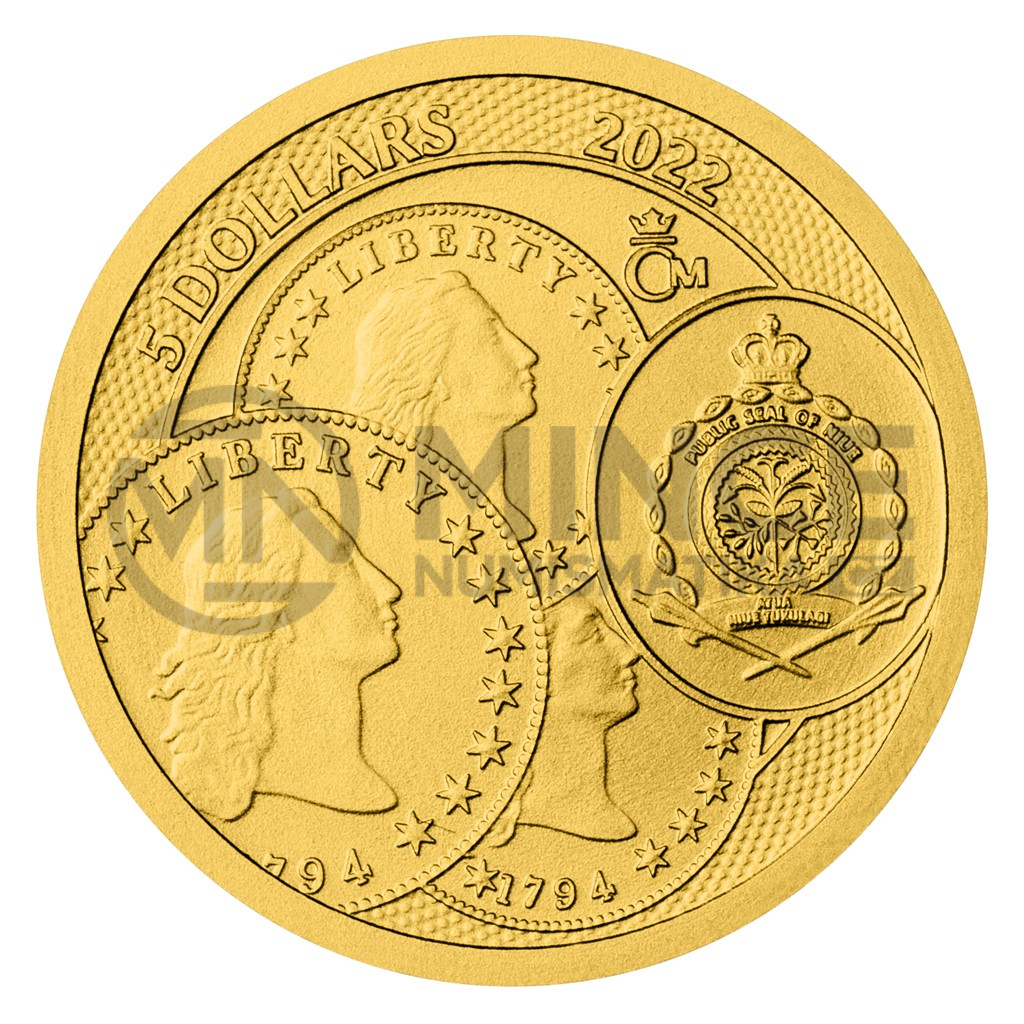 Zatímco reverzní strana mince, která je dílem designéra Ladislava Vraného a medailéra MgA. Martina Daška, předkládá tři jáchymovské tolary, na averzu najdete trojici amerických dolarů. Konkrétně se jedná o motiv úplně prvních mincí ražených Spojenými státy v roce 1794, které si od svého českého prapředka vypůjčily nejen jméno, ale také váhu a ryzost použitého kovu. Protože mince České mincovny vycházejí v licenci zahraničního emitenta, kterým je ostrov Niue, jejich averzní strana nese ještě jeho nezbytné atributy – státní znak, nominální hodnotu 5 DOLLARS (NZD) a rok emise 2022.