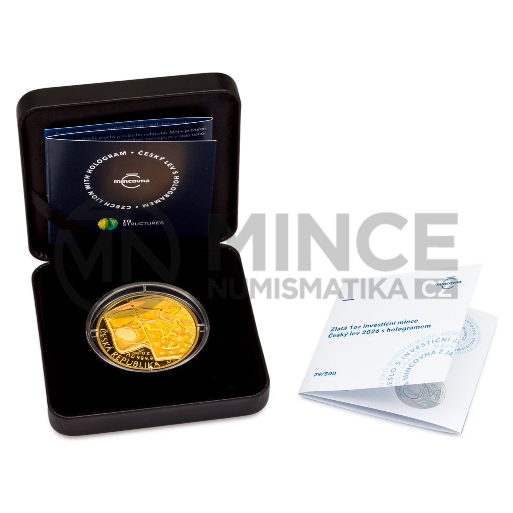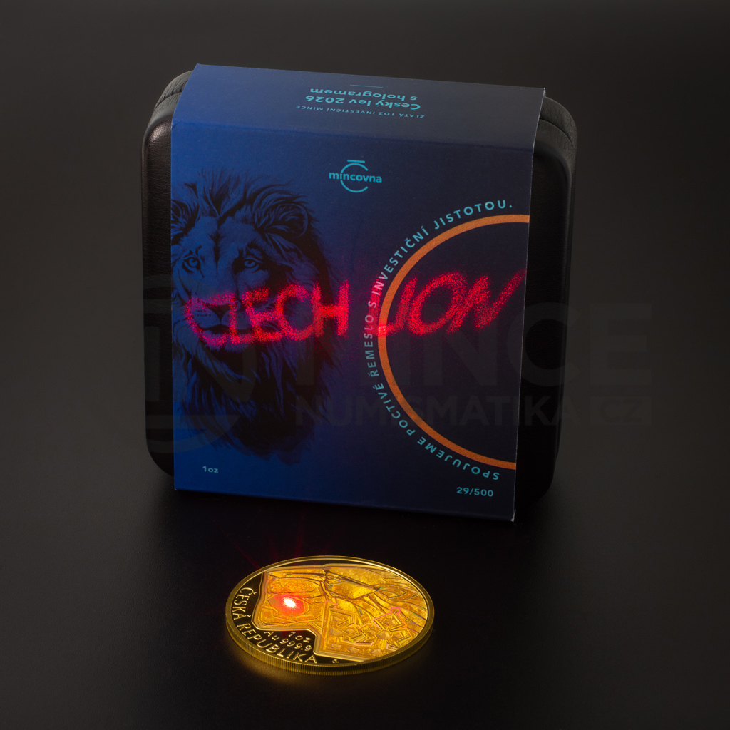 V roce 2026 představujeme unikátní variantu zlaté investiční mince České mincovny „Český lev“ s hmotností čítající jednu trojskou unci. Ústřední motiv této mince je namísto drobné plastiky tvořen raženým hologramem! Každý kus je číslovaný na hraně a to není vše...
