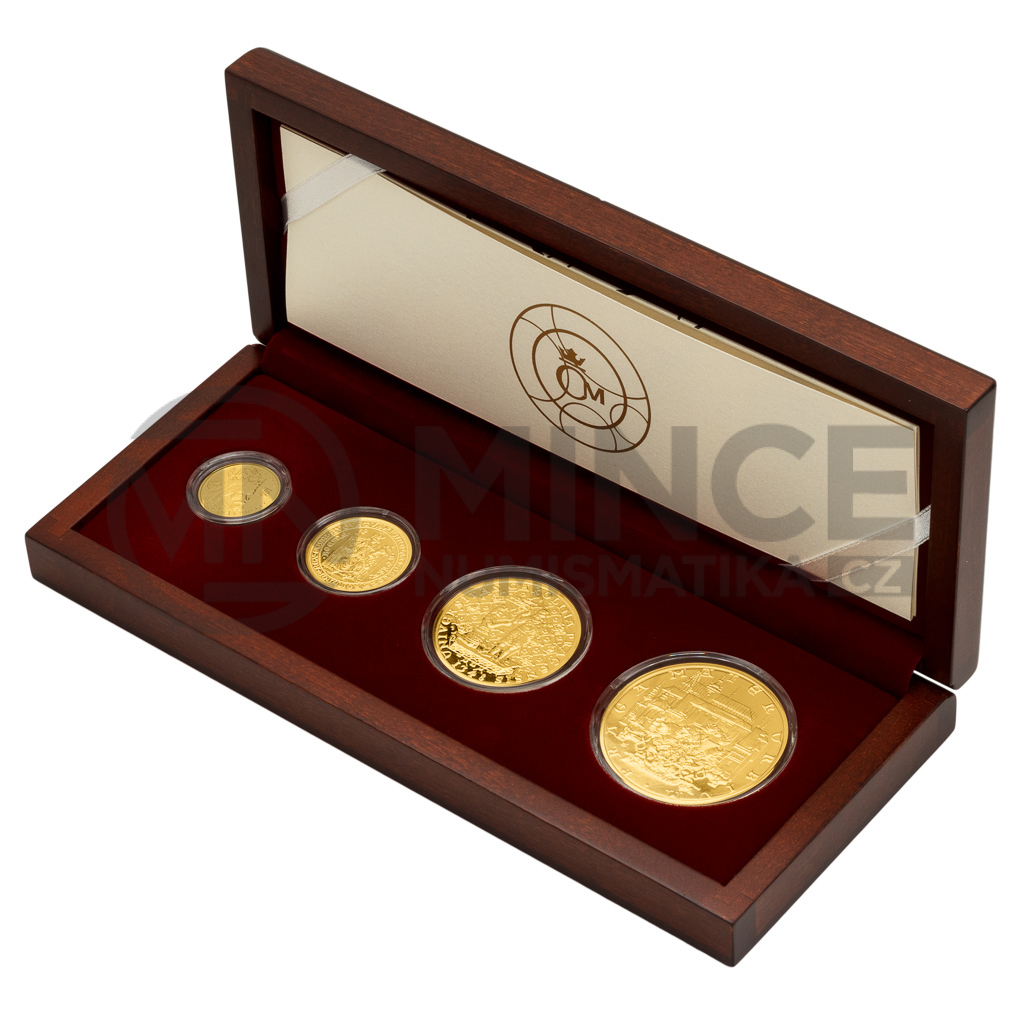 Čtyři zlaté novoražby jsou uloženy do luxusní dřevěné etue doplněné speciálním certifikátem pravosti, který vypráví jejich příběh. Emisní náklad čítá pouhých 125 ucelených sad.