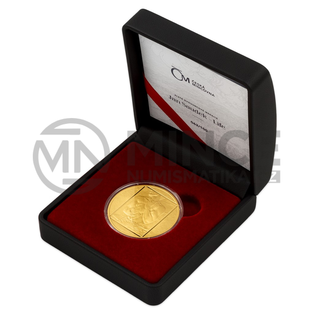 Janu Saudkovi vzdává hold již druhá zlatá medaile České mincovny o hmotnosti dvou trojských uncí. Jejím hlavním motivem je fotografie s názvem Život.
