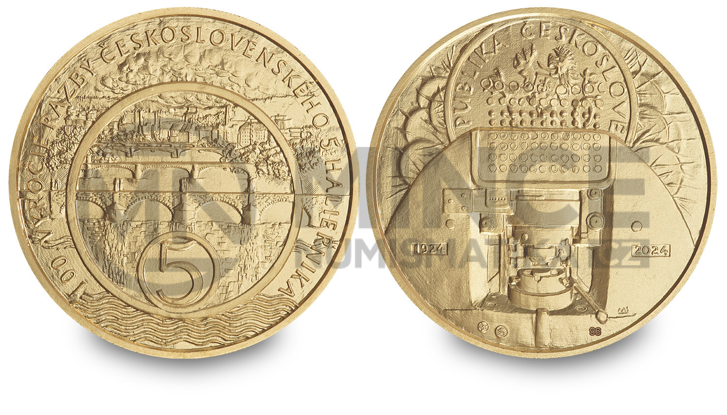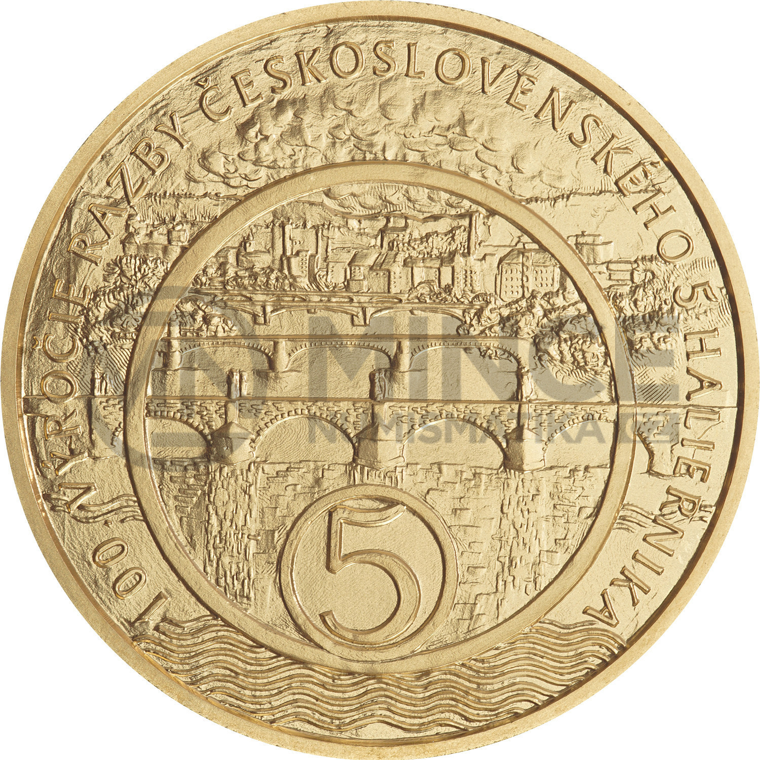 Medaila pripomína 100. výročie razby československého päťhaliernika z roku 1924. Vznik Československa 28. októbra 1918 viedol k nutnosti menovej reformy, ktorej sa ujal minister financií dr. Alois Rašín. Profesor Otakar Španiel predložil 29. mája 1922 modely pre päťhaliernik, dvojhaliernik a desaťhaliernik, pričom po úpravách model pre päťhaliernik získal súhlas na sériovú razbu. 7. augusta 1922 potvrdila Mincovňa Kremnica vhodnosť modelov a 24. februára 1923 ministerstvo schválilo veľkoobjemovú výrobu. Do konca roku 1923 bolo vyrazených 40 miliónov kusov, z čoho 2,2 milióna bolo odovzdaných bankovému úradu v roku 1924. Päťhaliernik z roku 1924 je dnes považovaný za najvzácnejšiu československú obehovú mincu, čo zvyšuje jej atraktivitu medzi zberateľmi. Nejasný dôvod razby a presný počet vyrazených kusov prispievajú k jej kultovému statusu.