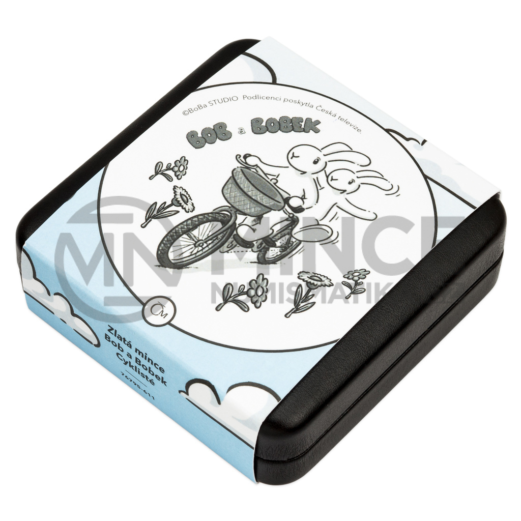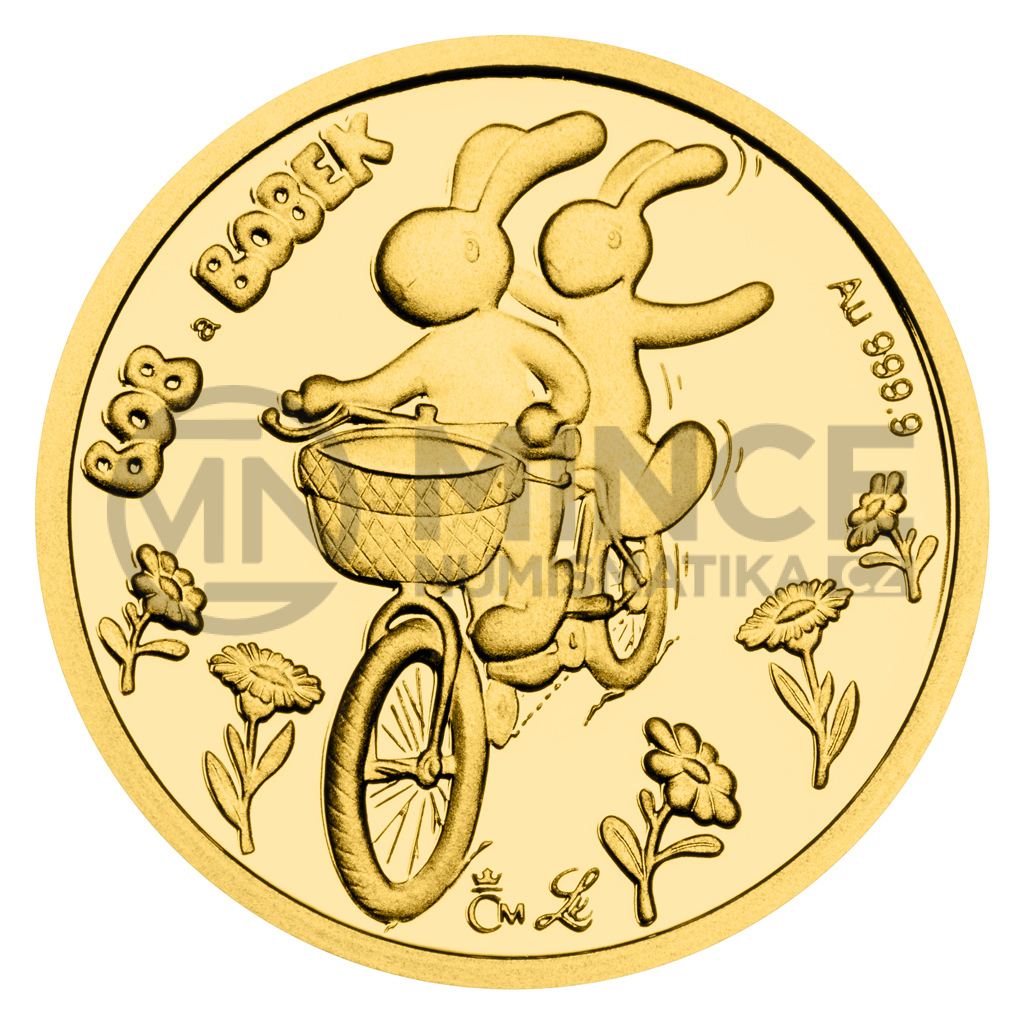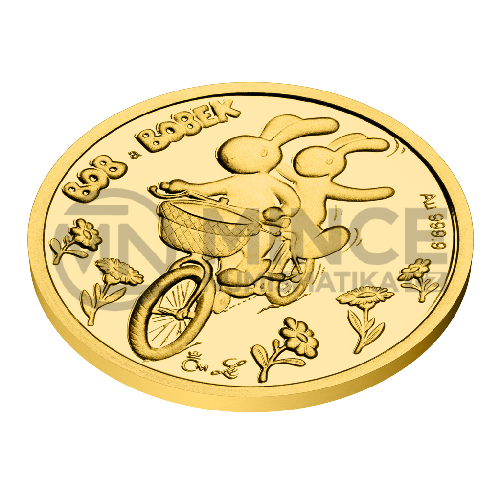 Na třetí zlaté minci ze sběratelské minisérie České mincovny věnované Bobovi a Bobkovi se oba králíci představují jako vášniví cyklisté.