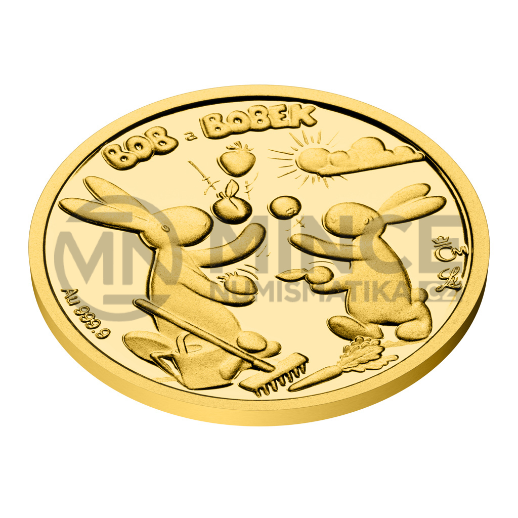 Druhá zlatá mince ze sběratelské minisérie České mincovny věnované Bobovi a Bobkovi představuje oba králíky v úloze nadšených zahradníků.