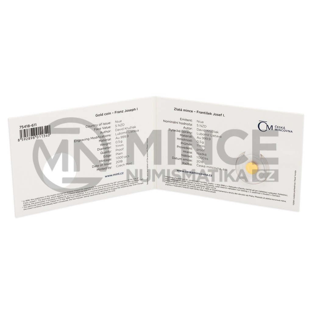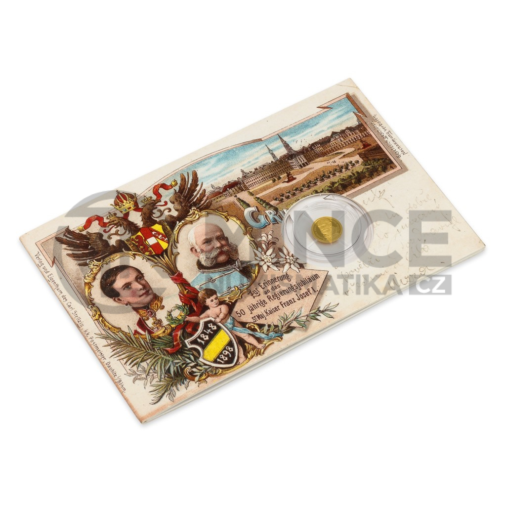 Příležitost připomenout 50. výročí vlády Františka Josefa I. v roce 1898 si v tehdejším Rakousku Uhersku nechal ujít jen málokdo. Nyní – o dalších 120 let později – si tuto oslavu připomínáme zlatou minimincí České mincovny uloženou do repliky dobové pohlednice.