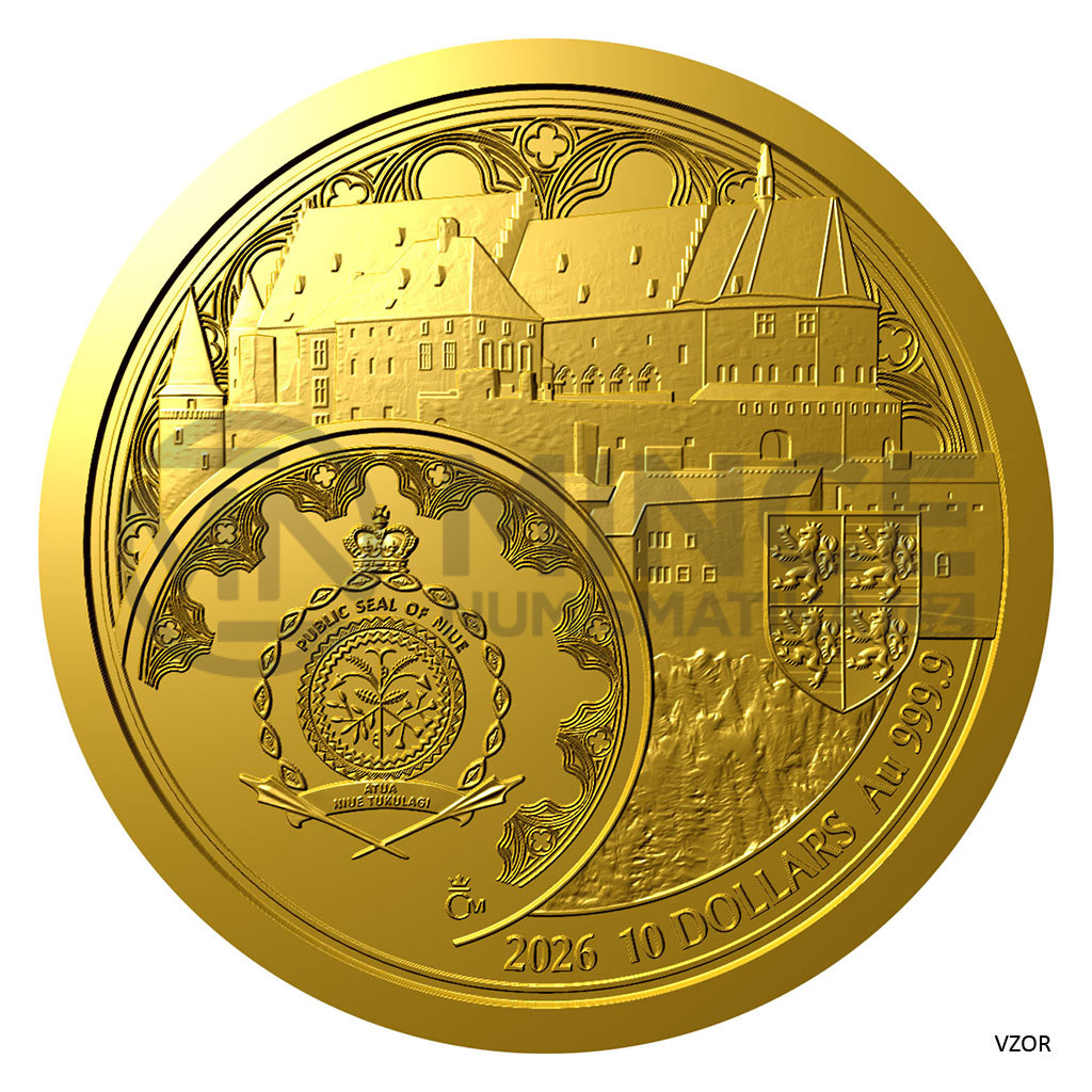 Reverzní stranu mince, kterou zpracoval medailér Jiří Hanuš, DiS., rozděluje leštěný pás na dvě poloviny. V pravé najdete klečící Elišku Přemyslovnu, v levé odcházejícího Jana Lucemburského. Uprostřed manželského sváru stojí Karel IV., který následuje otce, ale ohlíží se za matkou. Nad chlapcovou hlavou se vznáší královská koruna, do které teprve musí dorůst… Na averzní straně mince, která je společná celé minisérii, pak najdete Janův erb a lucemburský hrad Vianden, který byl jeho rodištěm i symbolem moci. Protože mince České mincovny vycházejí v zahraniční licenci ostrova Niue, nesou na averzu ještě jeho státní znak, nominální hodnotu 10 DOLLARS (NZD) a rok emise 2026 – to vše je zakomponováno do gotického