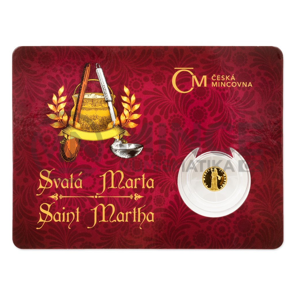 Šestá zlatá minimince České mincovny z cyklu Patroni je věnována paní domu a pilné hospodyňce svaté Martě.