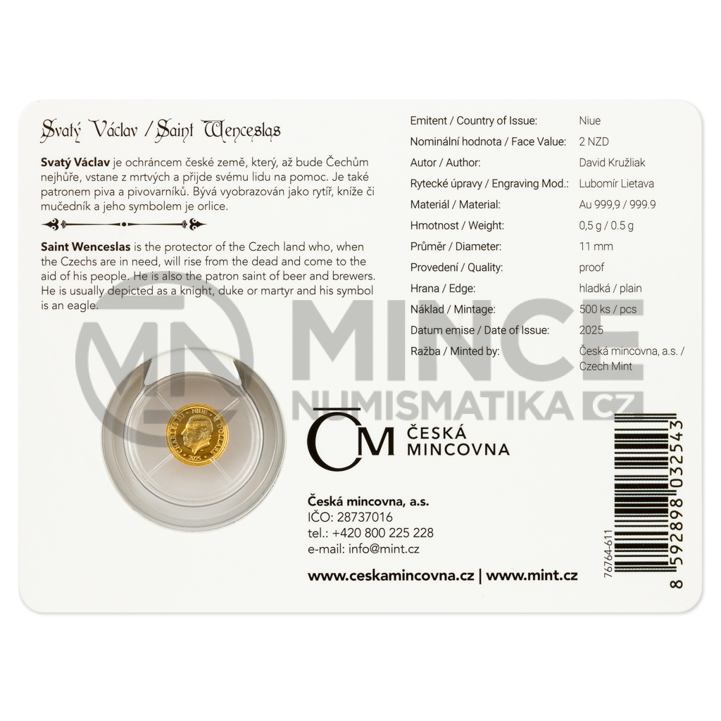 Na další zlaté miniminci České mincovny z cyklu Patroni se představuje svatý Václav.