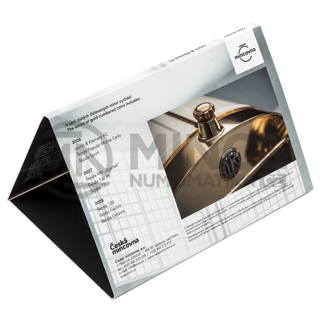 Triumfy značky Škoda v motorsportu sahají na samý počátek výroby automobilů Laurin & Klement. Již při motocyklových závodech si Václav Laurin a Václav Klement uvědomili, že sportovní úspěch lze velmi dobře přetavit v úspěch obchodní. Proto se krátce po zahájení výroby automobilů v roce 1905 pustili do vývoje závodního stroje. Legendární model Laurin & Klement FC připomíná první zlatá mince České mincovny z nového sběratelského cyklu.