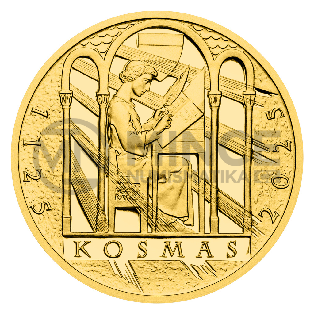 V roce 2025 si připomínáme 900. výročí úmrtí kronikáře Kosmase. Při této příležitosti vznikla půluncová zlatá medaile České mincovny, která je součástí volného cyklu nejkrásnějších nerealizovaných návrhů přihlášených do soutěží České národní banky.