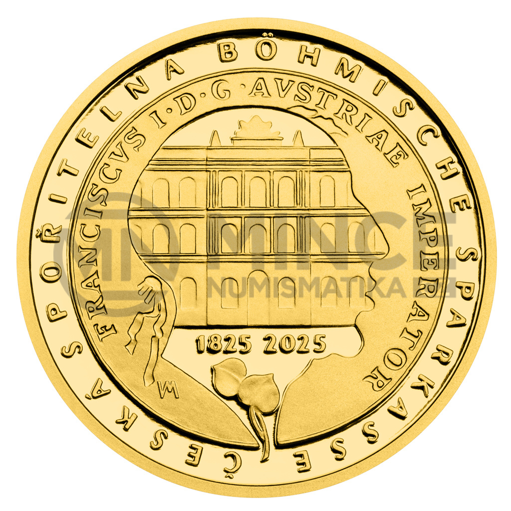 V roce 2025 si připomínáme 200. výročí založení České spořitelny. Při této příležitosti vznikla půluncová zlatá medaile České mincovny, která je součástí volného cyklu nejkrásnějších nerealizovaných návrhů přihlášených do soutěží České národní banky.