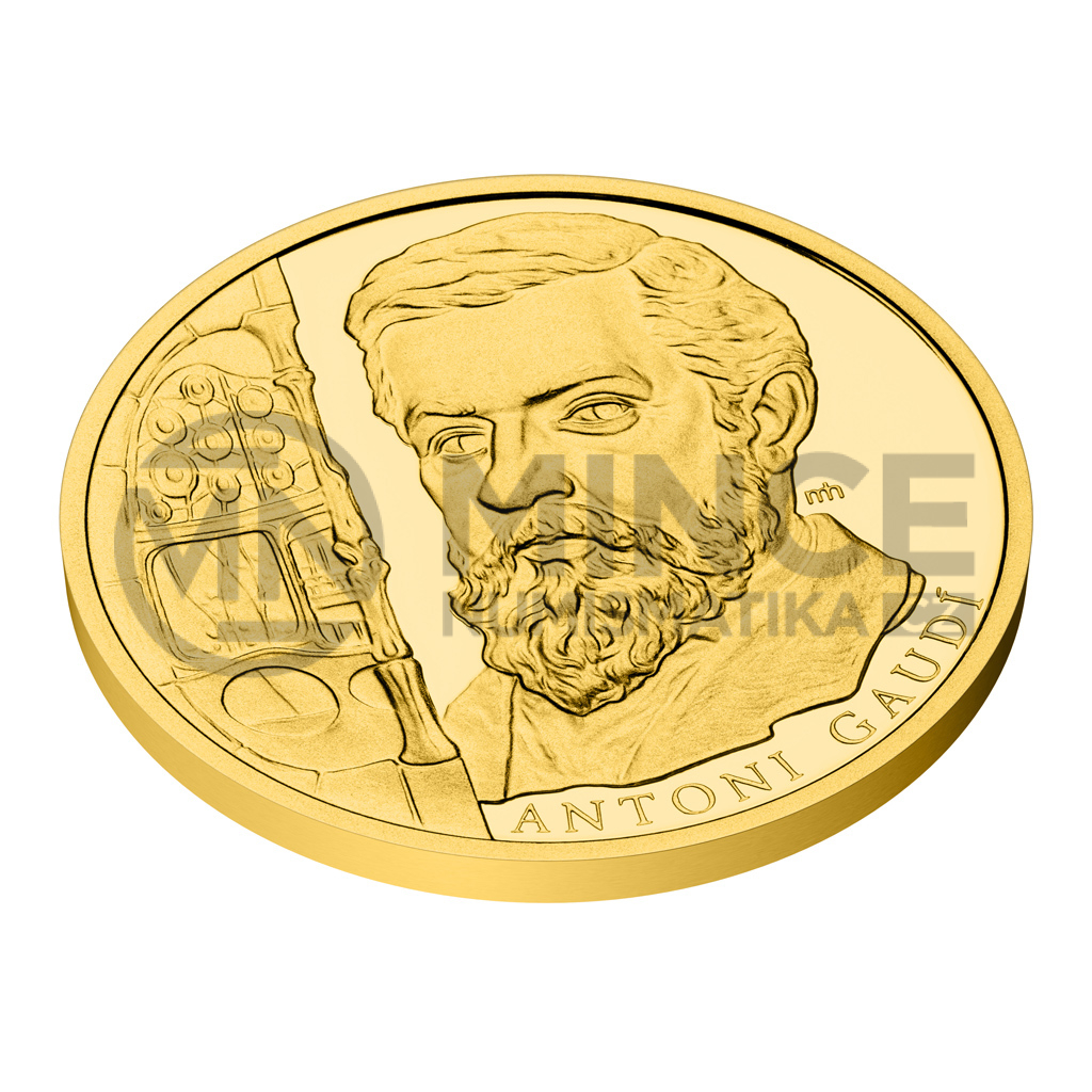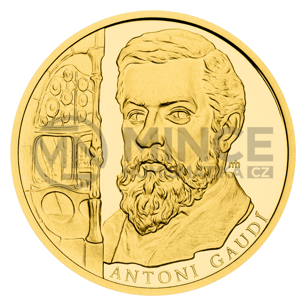 Na zlaté minci České mincovny z volného cyklu, který připomíná významné osobnosti světových dějin, se objevuje Antoni Gaudí.