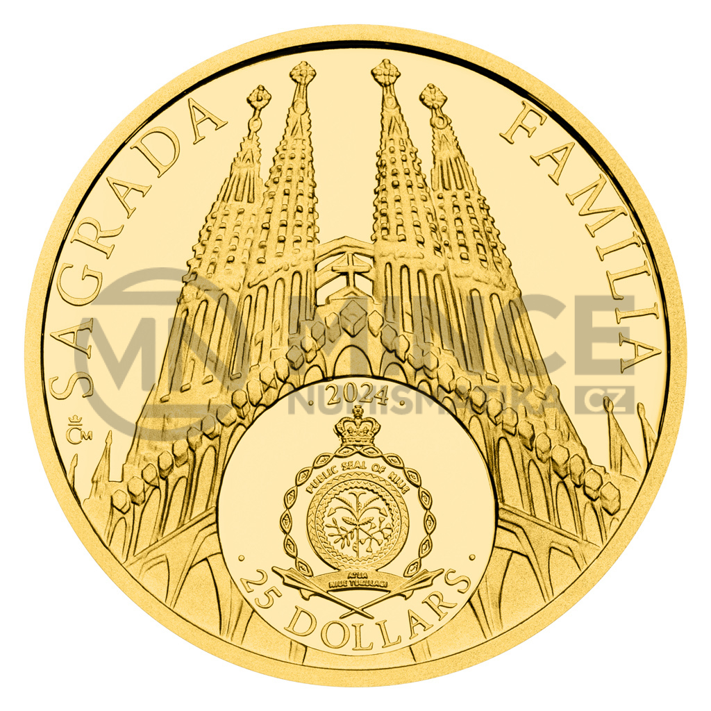 Autorem pamětní mince se stal medailér Mgr. Art. Miroslav Hric, Art. D. Věrný portrét architekta inspirovaný dobovou fotografií je na reverzní straně mince doplněn opisem ANTONI GAUDÍ a fragmentem okna barcelonského domu Casa Batlló. Averzní strana mince pak předkládá Gaudího proslulý chrám obklopený opisem SAGRADA FAMÍLIA. Protože se jedná o minci vydávanou v zahraniční licenci ostrova Niue, nese averz ještě nezbytné atributy tohoto emitenta – státní znak, nominální hodnotu 25 DOLLARS (NZD) a rok emise 2024.