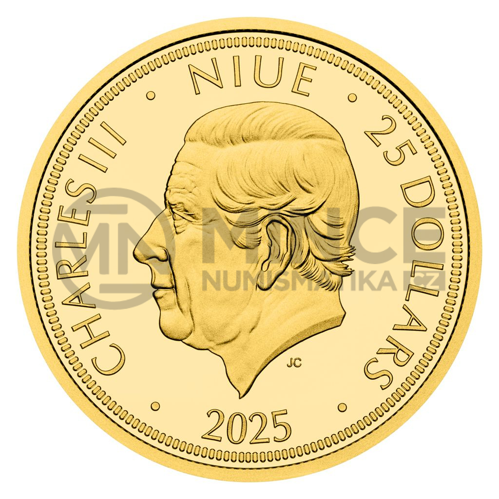 Pamětní mince, která vychází z originálního díla Radka Pilaře, je dílem medailérky Evy Prouskové, DiS. Na averzní straně najdete Večerníčka tak, jak ho znáte – na hlavě má papírovou čepici, sedí na houpacím koníkovi a rozhazuje listy pohádkových příběhů. Protože mince České mincovny vycházejí v zahraniční licenci ostrova Niue, nesou na averzu ještě portrét krále Karla III., nominální hodnotu 5 DOLLARS (NZD) a rok emise 2025.