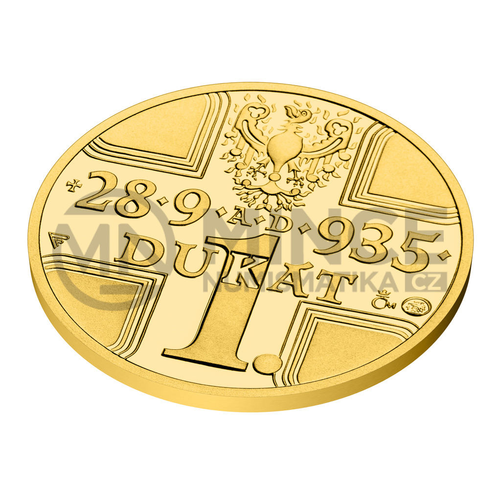 Averzní strana zlatého dukátu předkládá křížovou kompozici, které vévodí nápis 1DUKÁT doplněný datem zavraždění svatého Václava 28. 9. 935 AD (anno Domini – léta Páně). Na averzu se vyjímá ještě plamenná orlice nazývaná též svatováclavská či přemyslovská. Na reverzní straně pak najdete portrét knížete v plné zbroji doplněný textem SV. VÁCLAV. Výtvarný návrh dukátu je dílem akademického malíře Vladimíra Pavlici, který bohužel již není mezi námi, a tak své dílo nestihl dokončit. Osiřelých kresebných předloh se po celých deseti letech od jejich vzniku ujali medailéři Petr Patka, DiS., a Jiří Hanuš, DiS., kteří je převedli do reliéfní podoby.